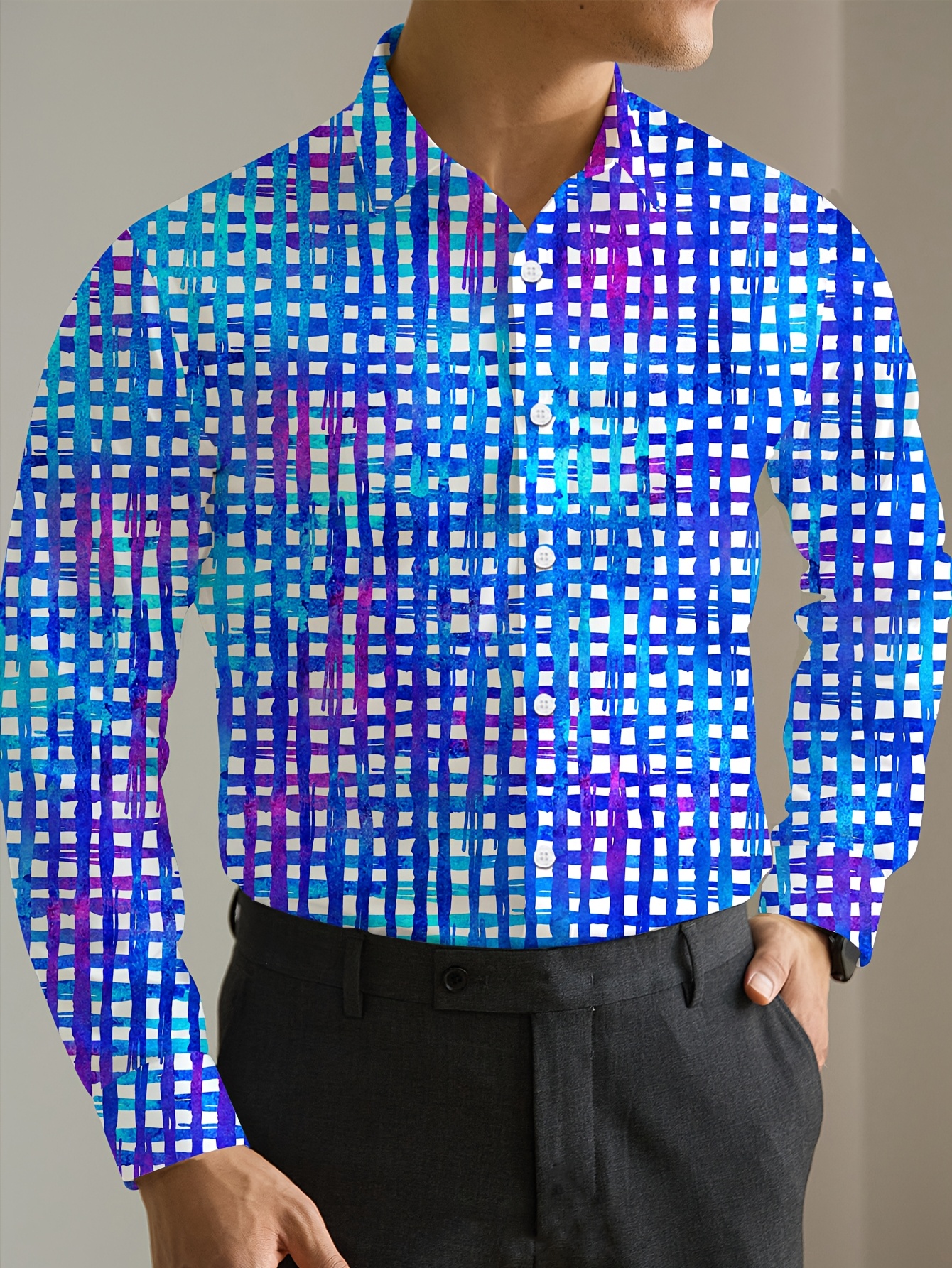 Men's Boho Chic Plus Size Floral Print Shirt - Polyester & Elastane Blend, Non-Stretch Fabric, Pockets, Perfect for Spring/Fall, PLUS SIZE