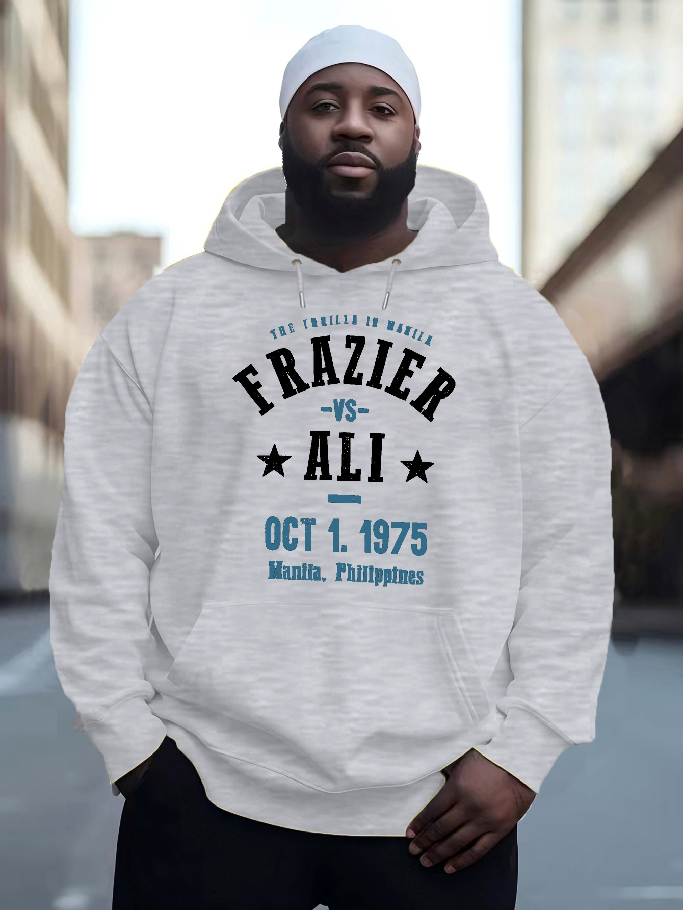 Men'S Plus Size Hoodie, Frazier vs Ali 1975 Print, Polyester Microfiber, Casual Sports Sweatshirt with Drawstring, Regular Fit, Knit Fabric, Autumn & Winter Fashion