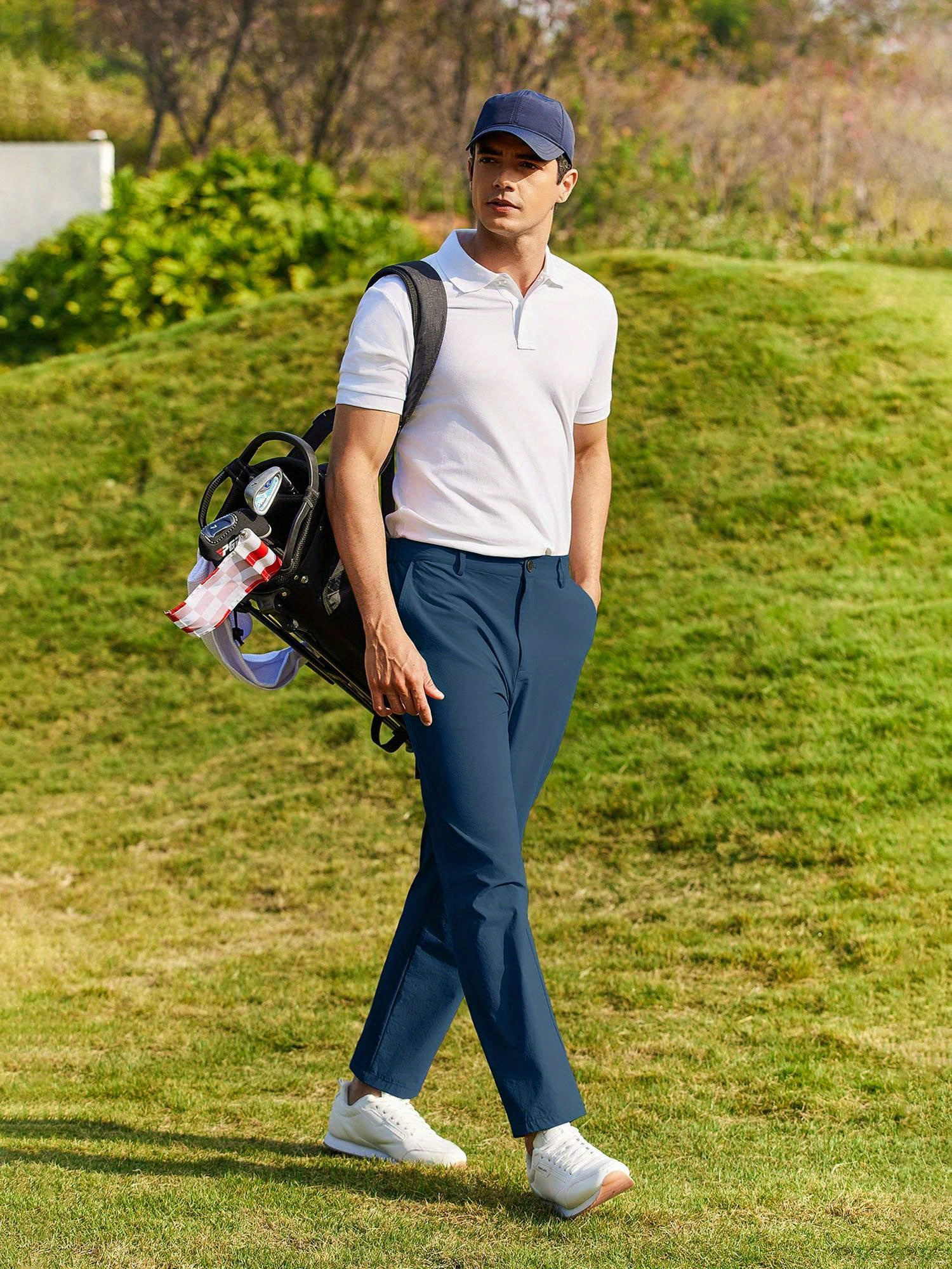 Men's Solid Classic Pants For All Seasons, Casual Comfy Outdoor Trousers As Gift