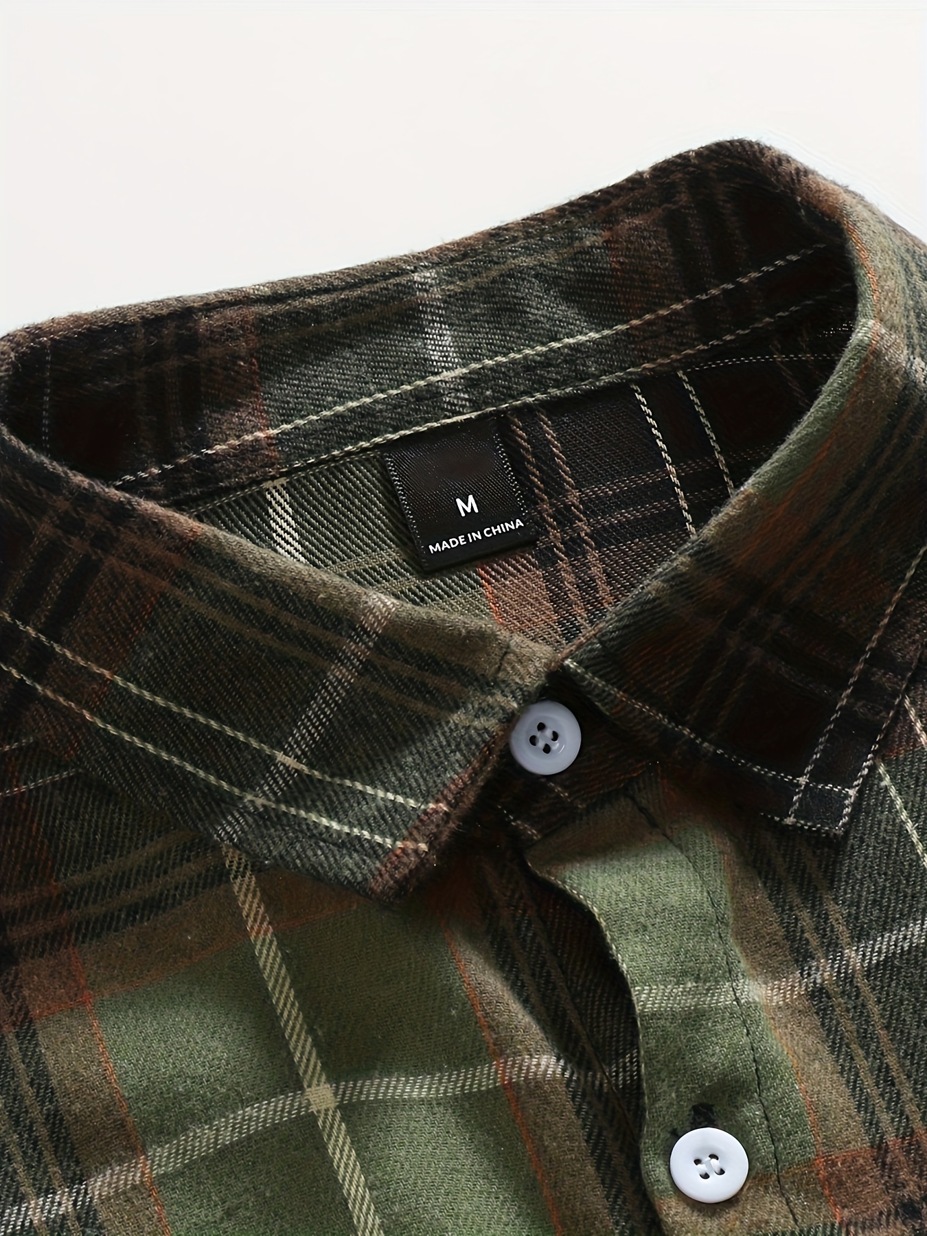 Plus Size Men's Plaid Shirt Oversized Long Sleeve Shirt For Fall Winter, Men's Clothing