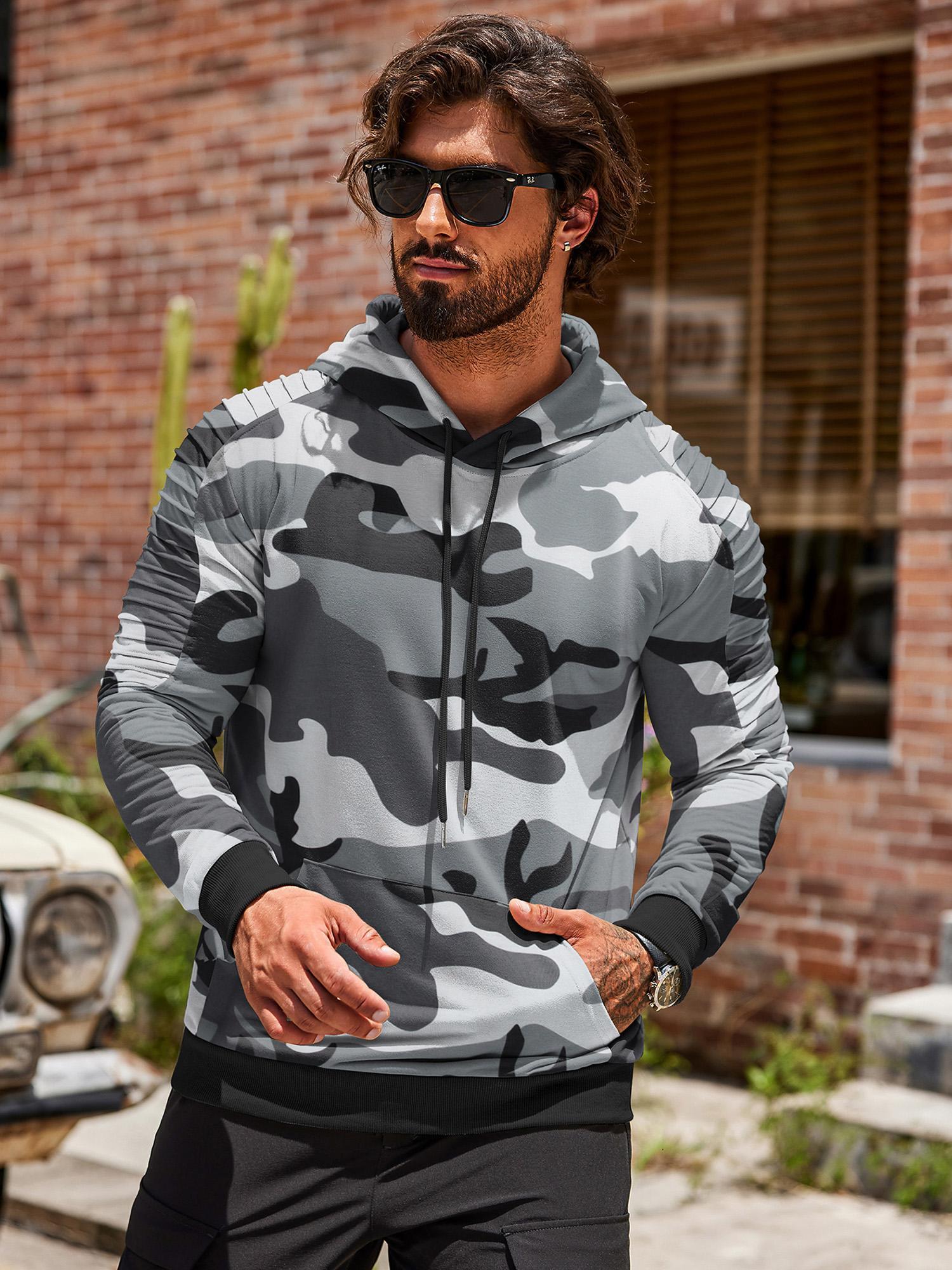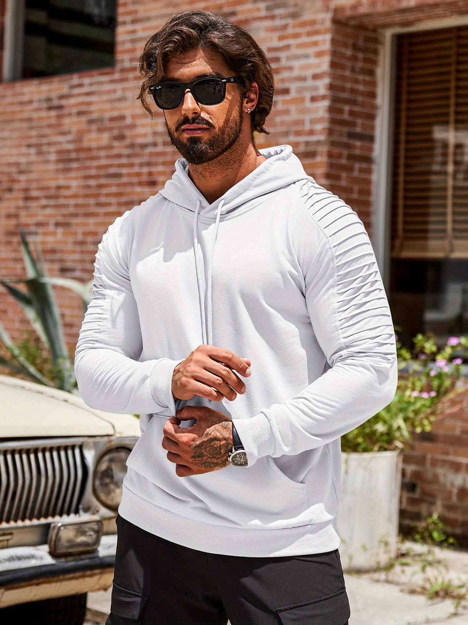 [1pc Men'S Sports Hoodie] Men'S Plus Size Active Hoodie, Polyester Knit Fabric, Casual Sports Style, Solid Color, Slight Stretch, with Pocket, for Gym Athletic Pullover Hooded Sweatshirt