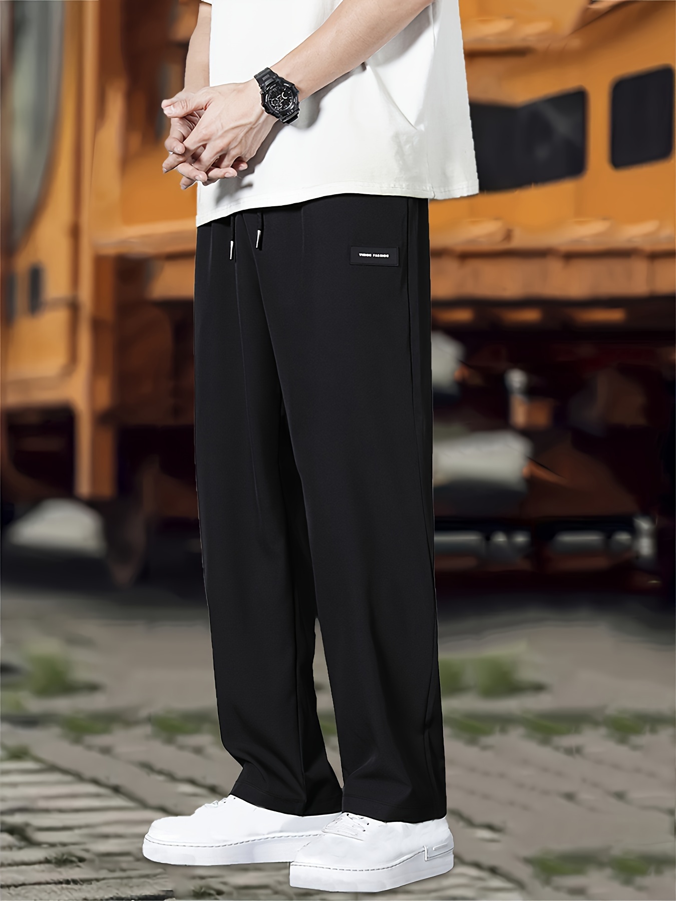 Men's Fashionable Plain Casual Pants, Comfortable Version, Elastic Waist With Drawstring Pants, Suitable For Outdoor Activities Gifts