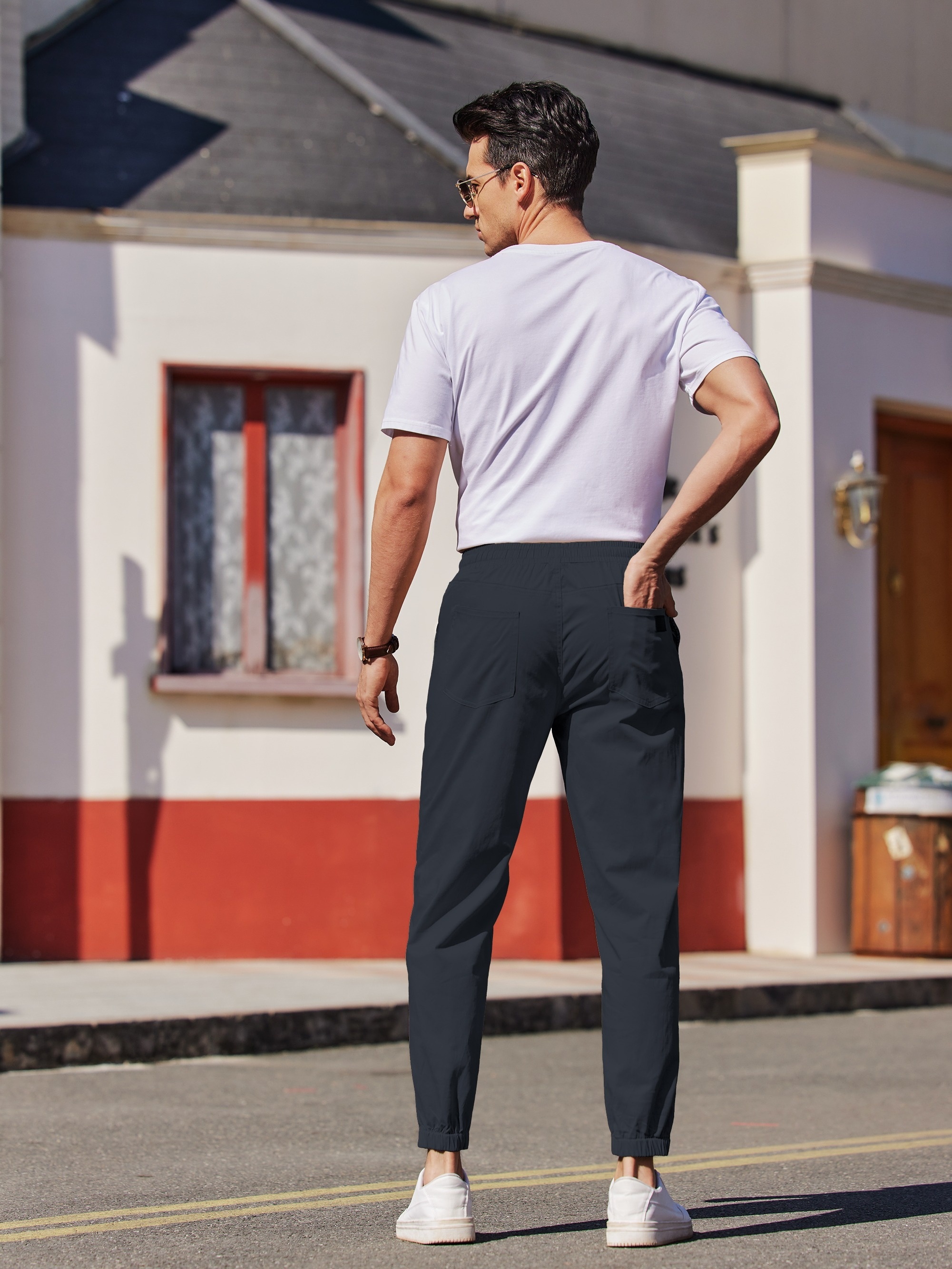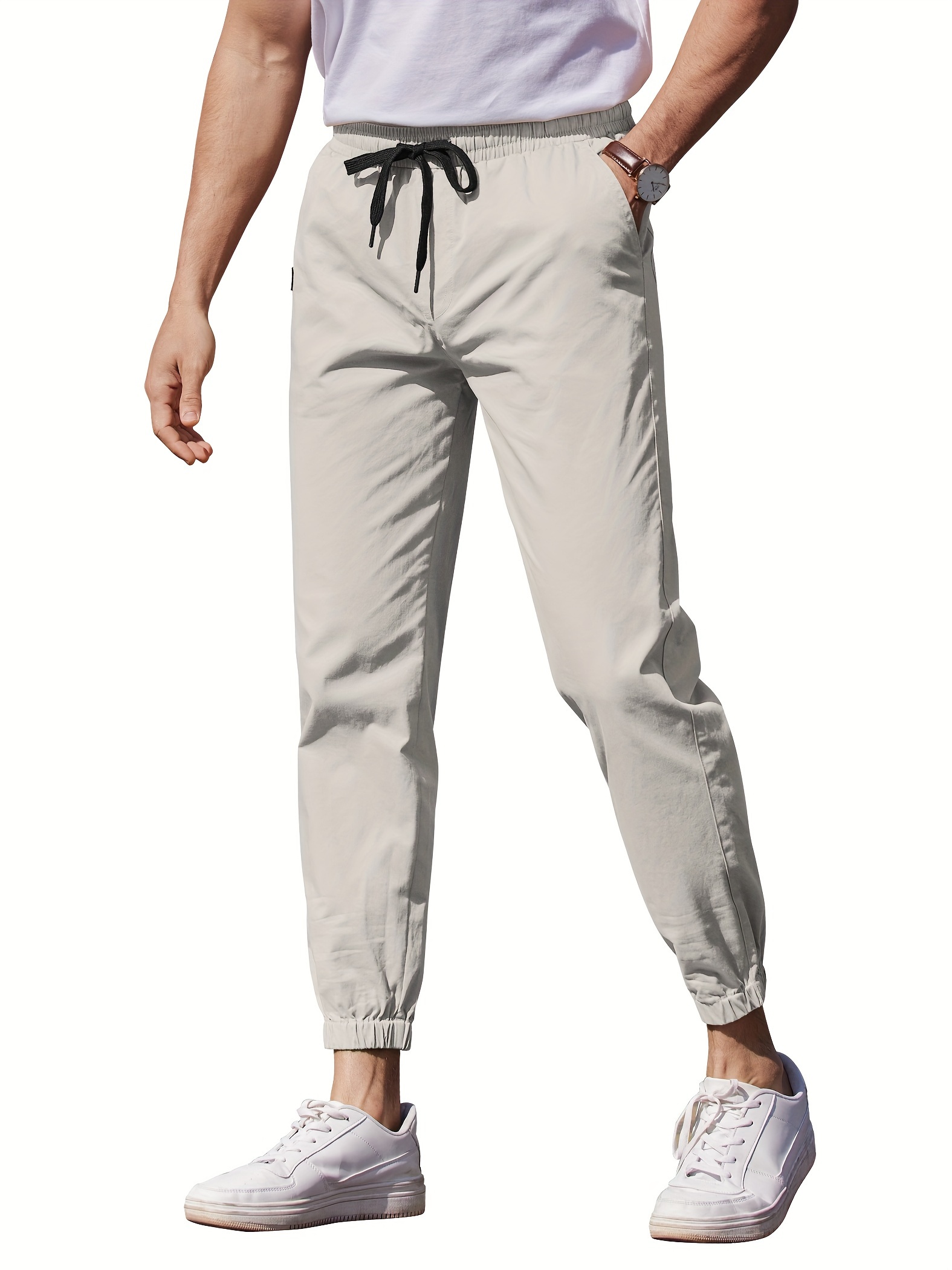 Mens Comfy Stretch Joggers - Elastic Drawstring Waist, Chino Cargo Pockets, Hiking Outdoor Track Sweatpants for Casual Daily Wear - Breathable, Soft, Quick-Drying Fabric