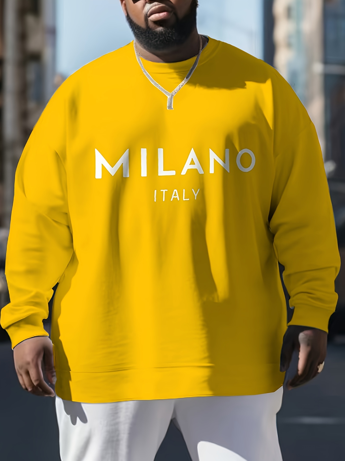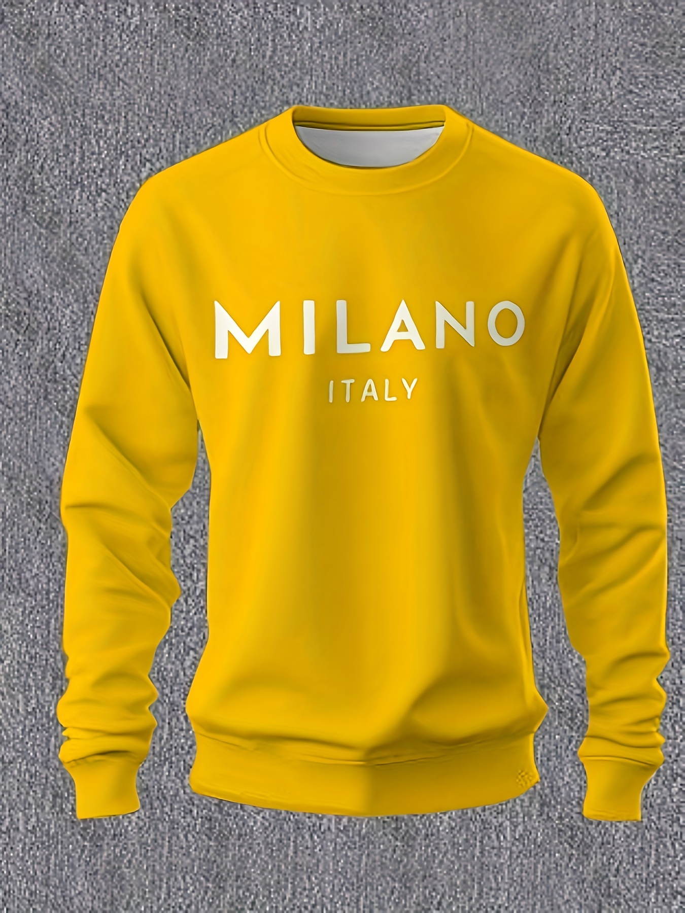 Men's Milan Italy Print Crew Neck Sweatshirt - Casual & Sporty Long Sleeve Pullover, Perfect for Outdoor Activities, PLUS SIZE