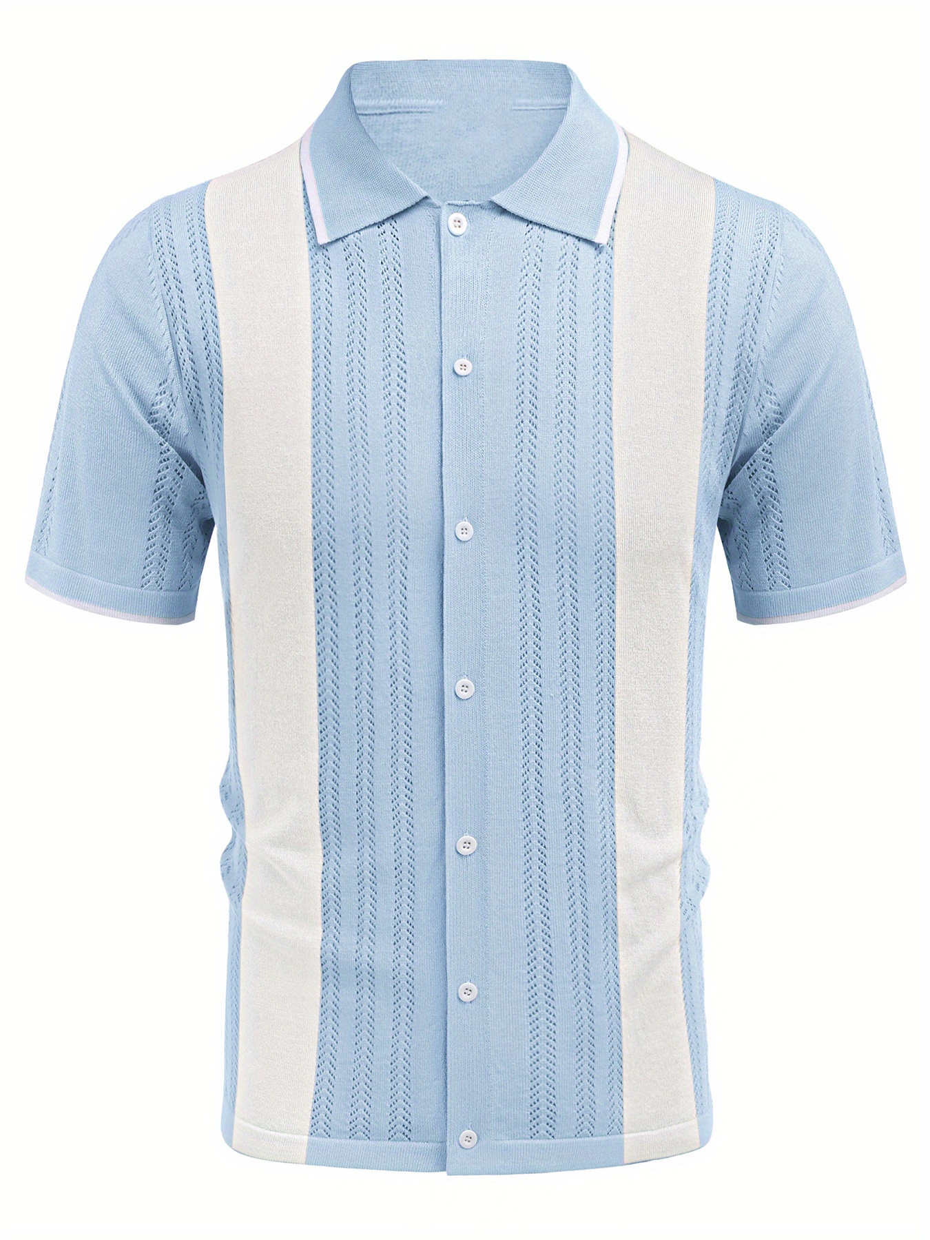 1pc Men'S Casual Knit Polo Shirt - Polyester Short Sleeve Lapel Collar, Slight Stretch Solid Color, Button Down Beach Top for Spring/Summer/Fall, Plus Size