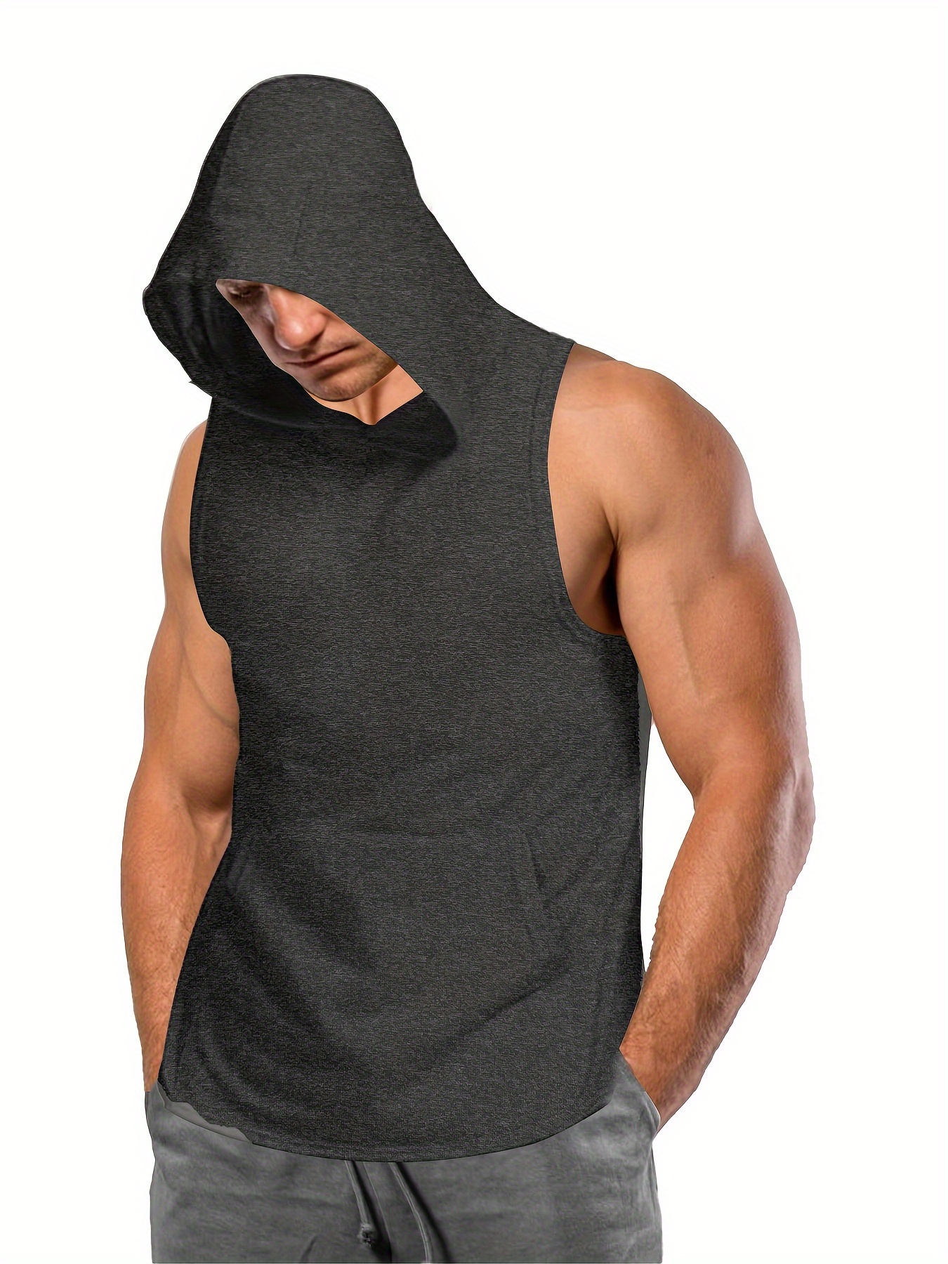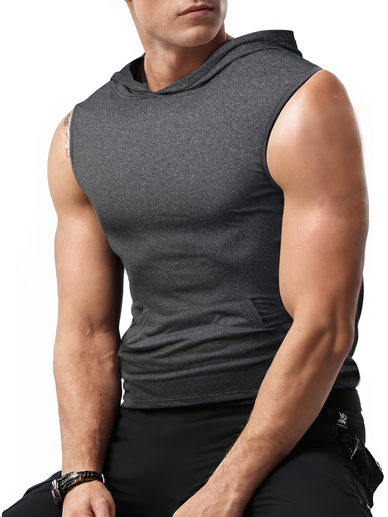 Stylish Sleeveless Hooded Muscle Tank Top - Breathable, Moisture-Wicking, Quick-Drying, Perfect for Summer Sports, Fitness, Gym, Running, and Outdoor Activities - Ideal for Men Who Want Comfort and Freedom of Movement