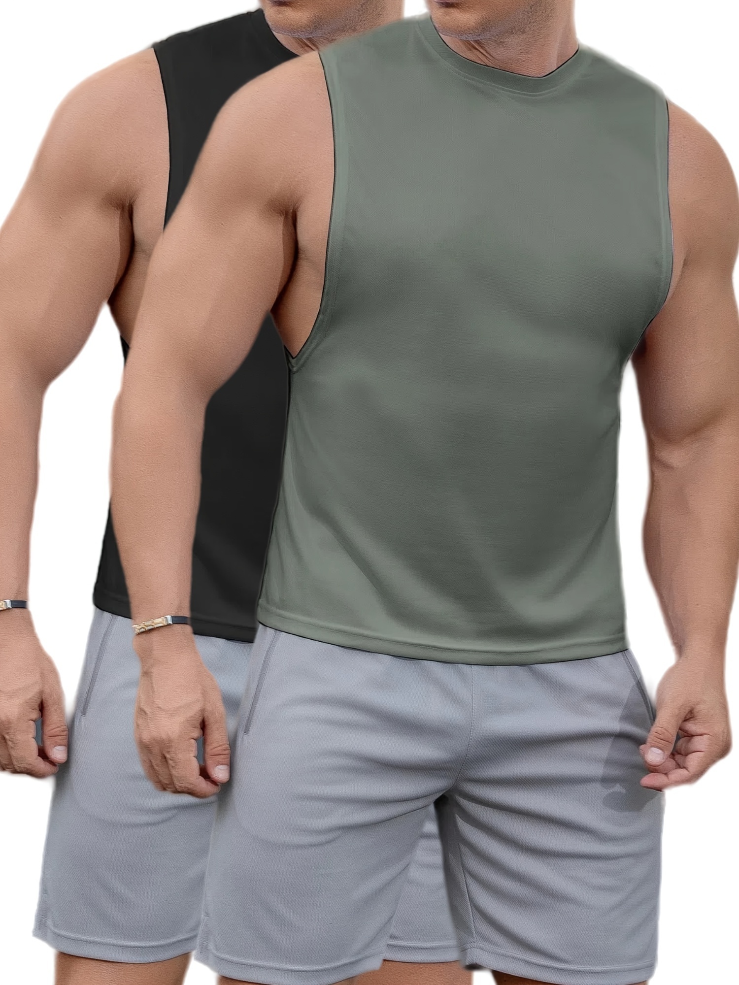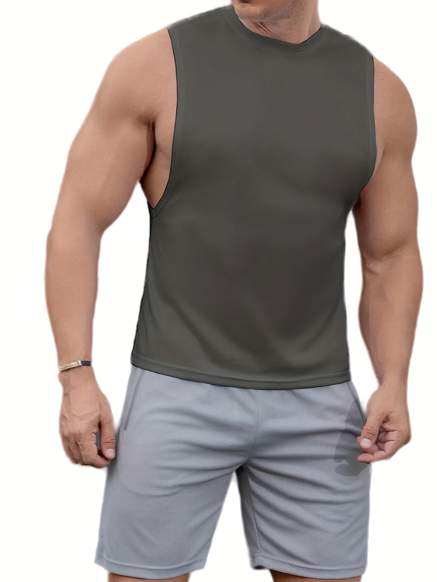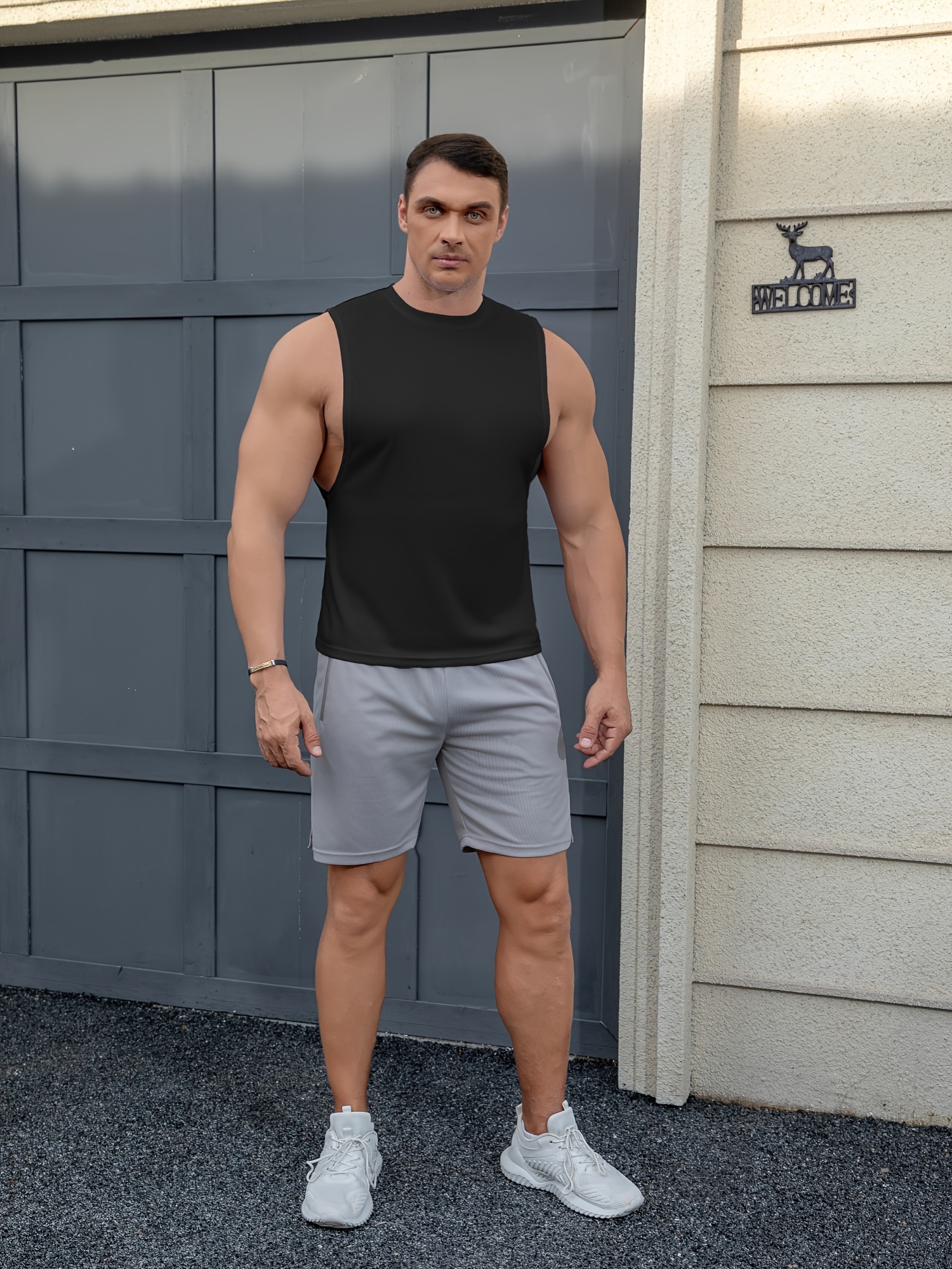 ZPB Mens Gym Tank Top Vest - Moisture-Wicking, Quick-Dry, Medium Stretch, Loose Fit, Crew Neck, Solid Color, Perfect For Basketball, Boxing, Cycling, Hiking, Outdoor, Running, Sports, Training - All Seasons Wear