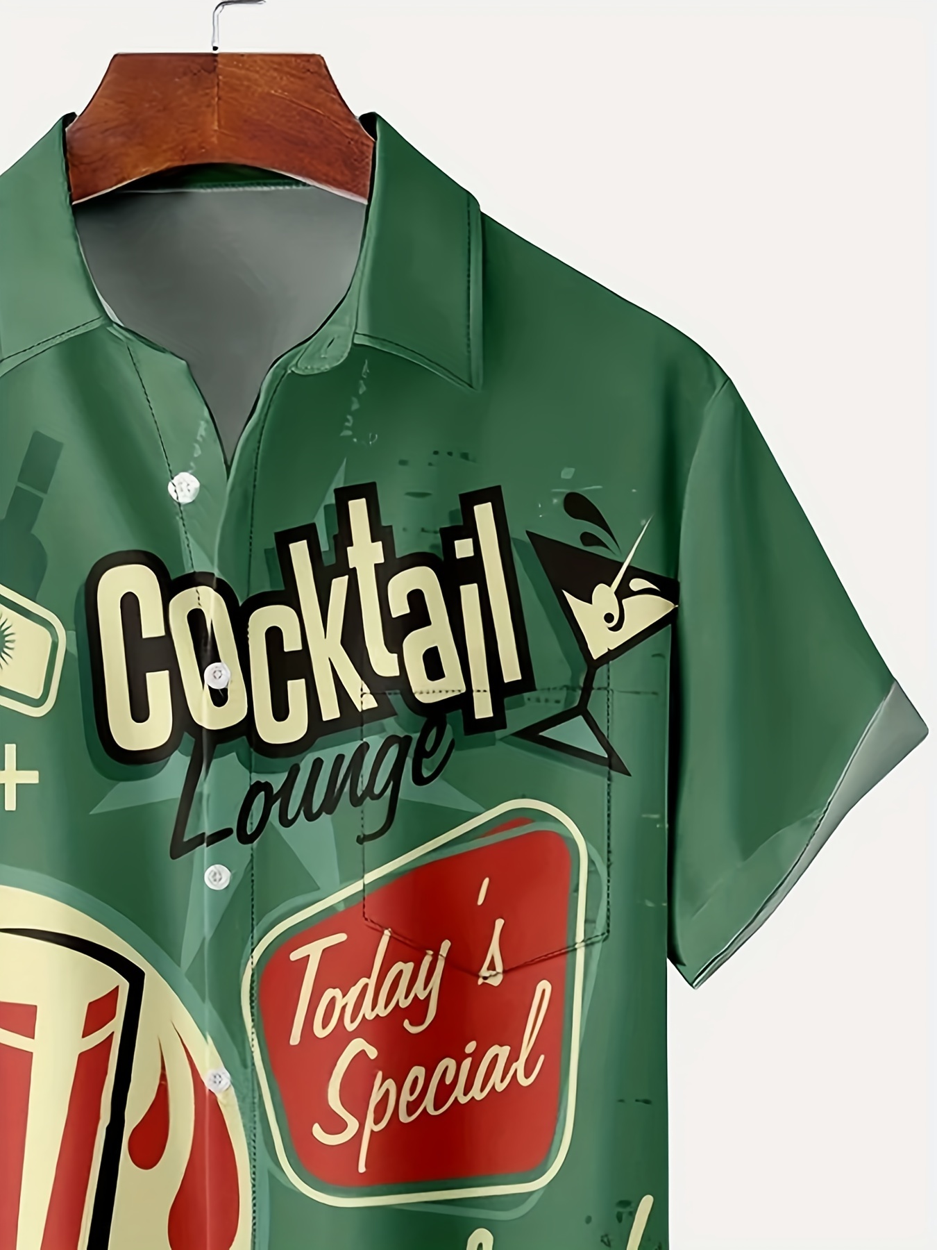 Plus Size Mens Hawaiian Shirt - Classic Lapel, Vintage Cocktail Print, Short Sleeve, Button Down, Chest Pocket - Perfect for Tropical Vacations and Outdoor Adventures