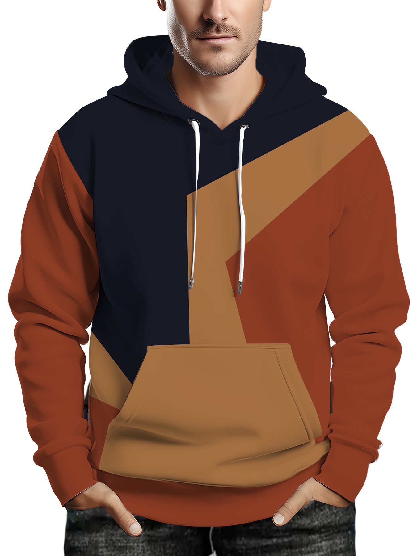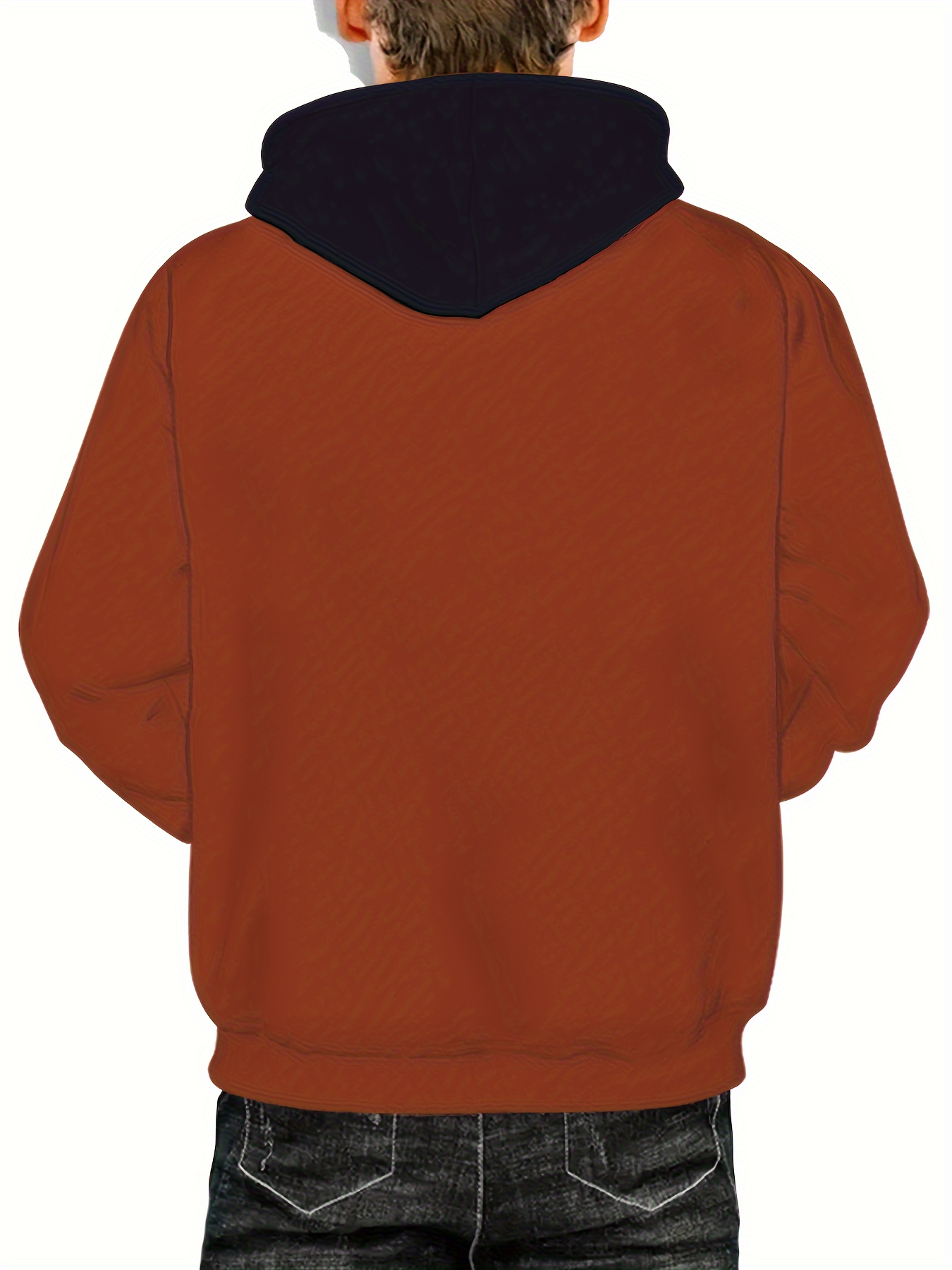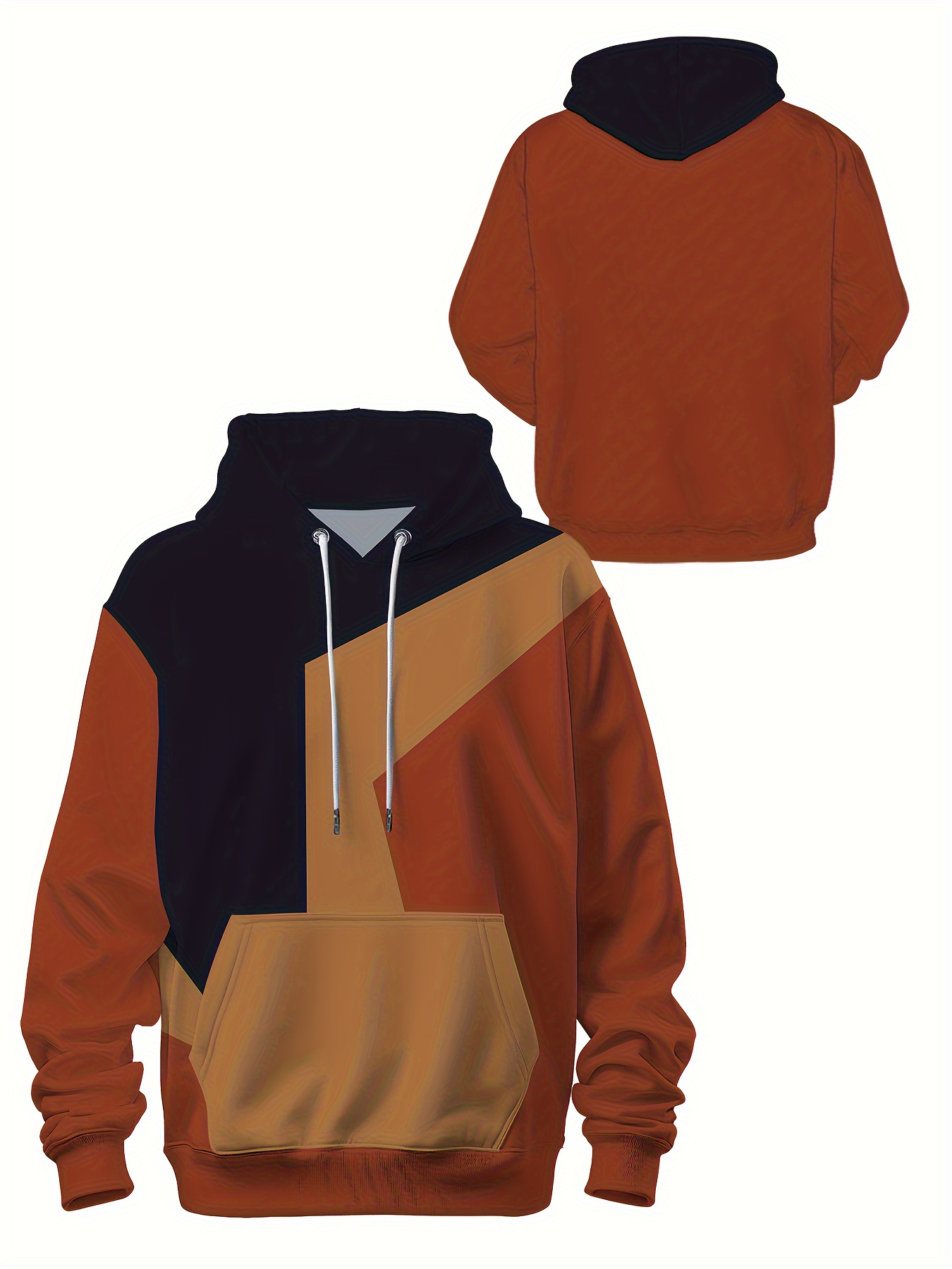Plus Size Men's Retro Color Block Hoodie - Casual & Stylish Baseball Jacket for Spring/Fall, Breathable Polyester Blend, PLUS SIZE