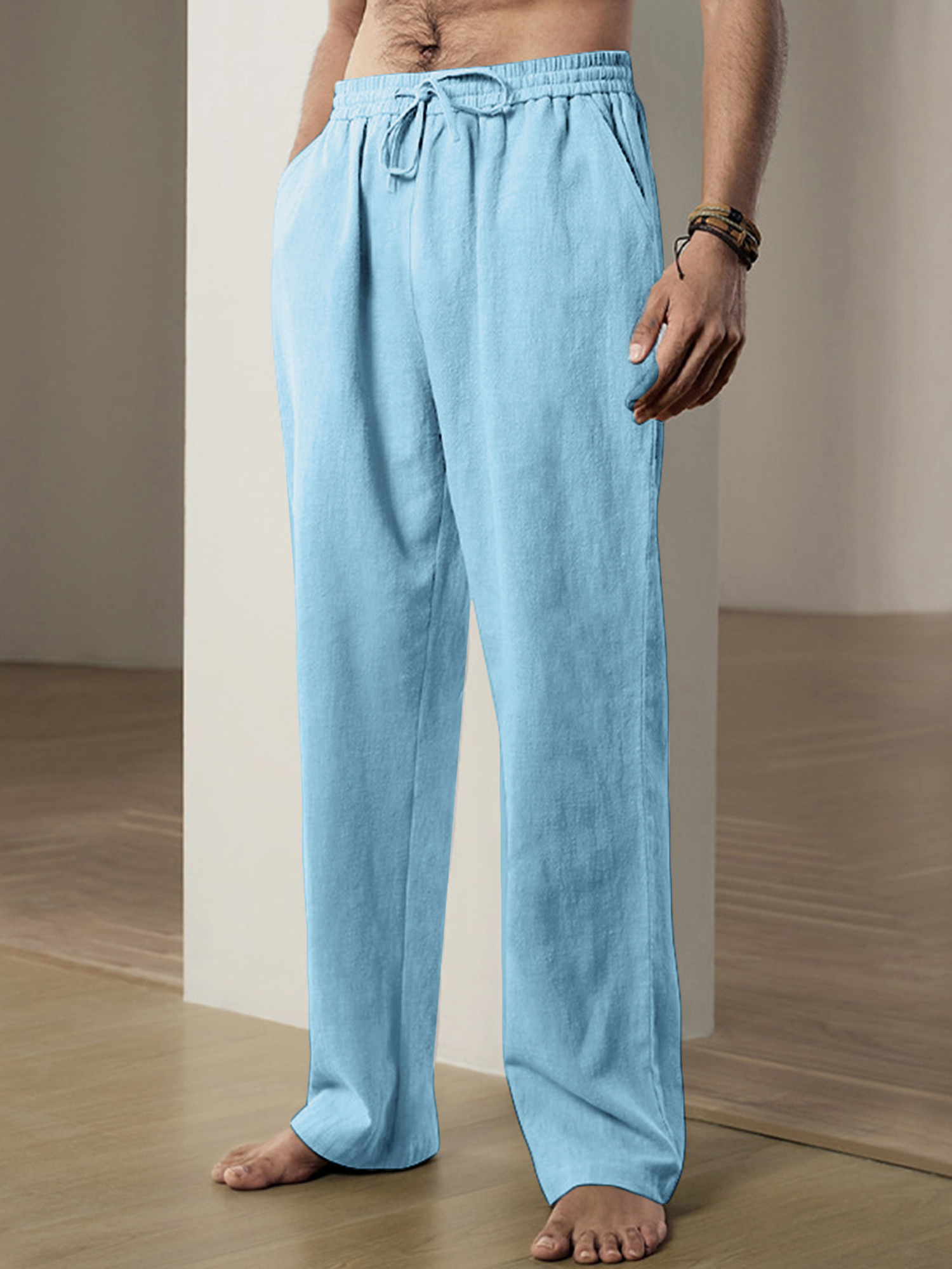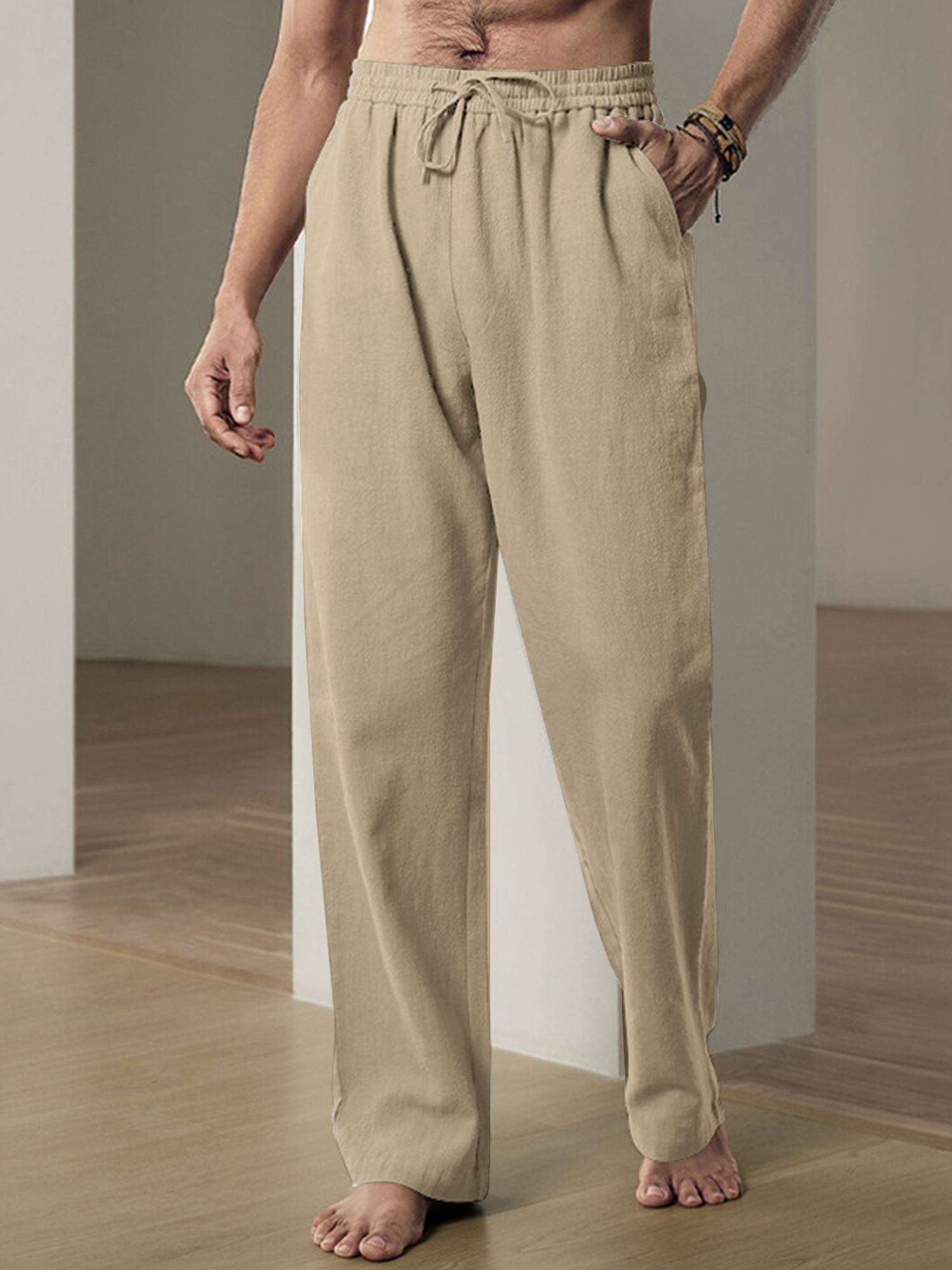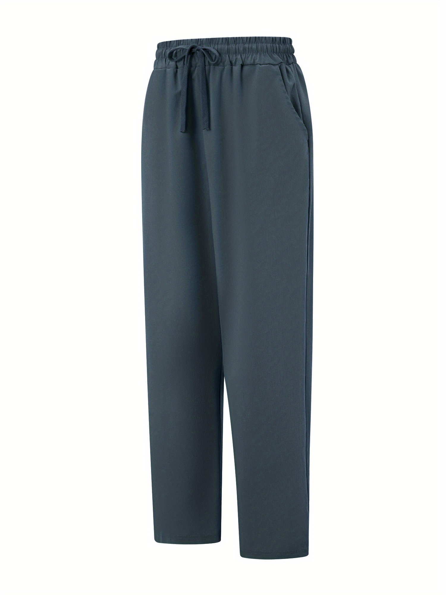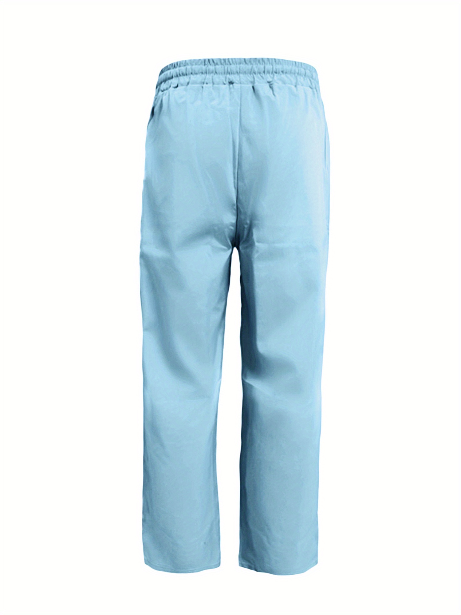 Men'S Casual Linen-Style Pants, Polyester, Loose Fit, Solid Color, Slight Stretch, with Drawstring Waist, for All-Season Weekend Casual Wear