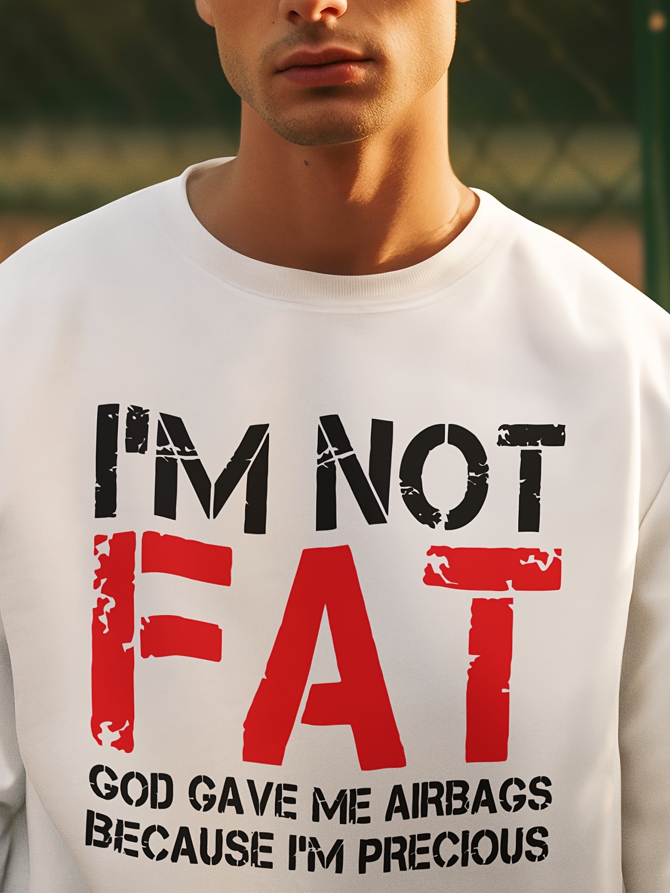 I'M NOT FAT Funny Letter Print, Men's Fashion Plus Size Crew Neck Long Sleeve Sweatshirt, Comfortable Pullover Top, Perfect For Casual Daily Wear