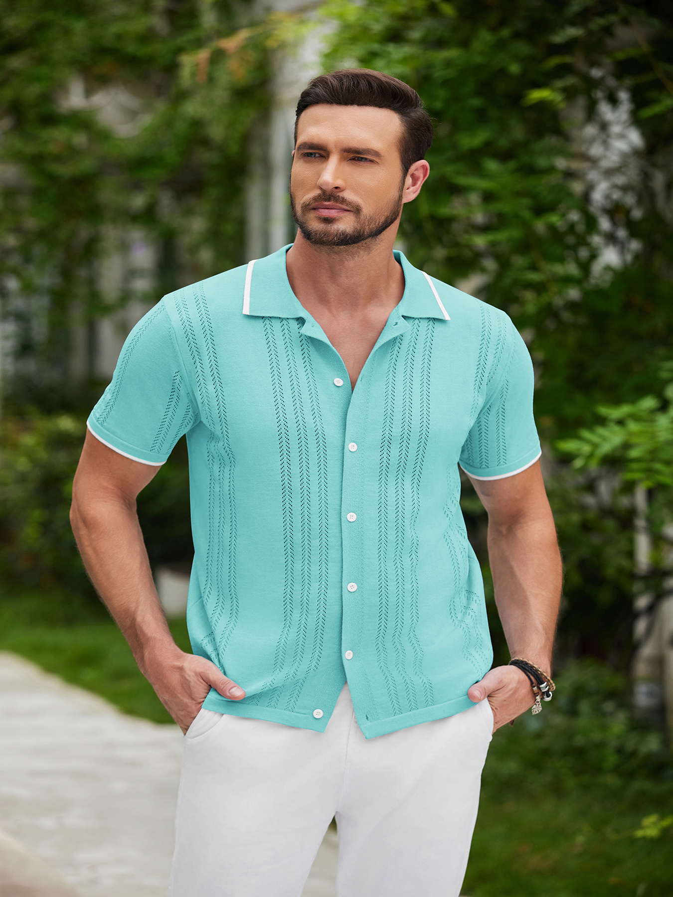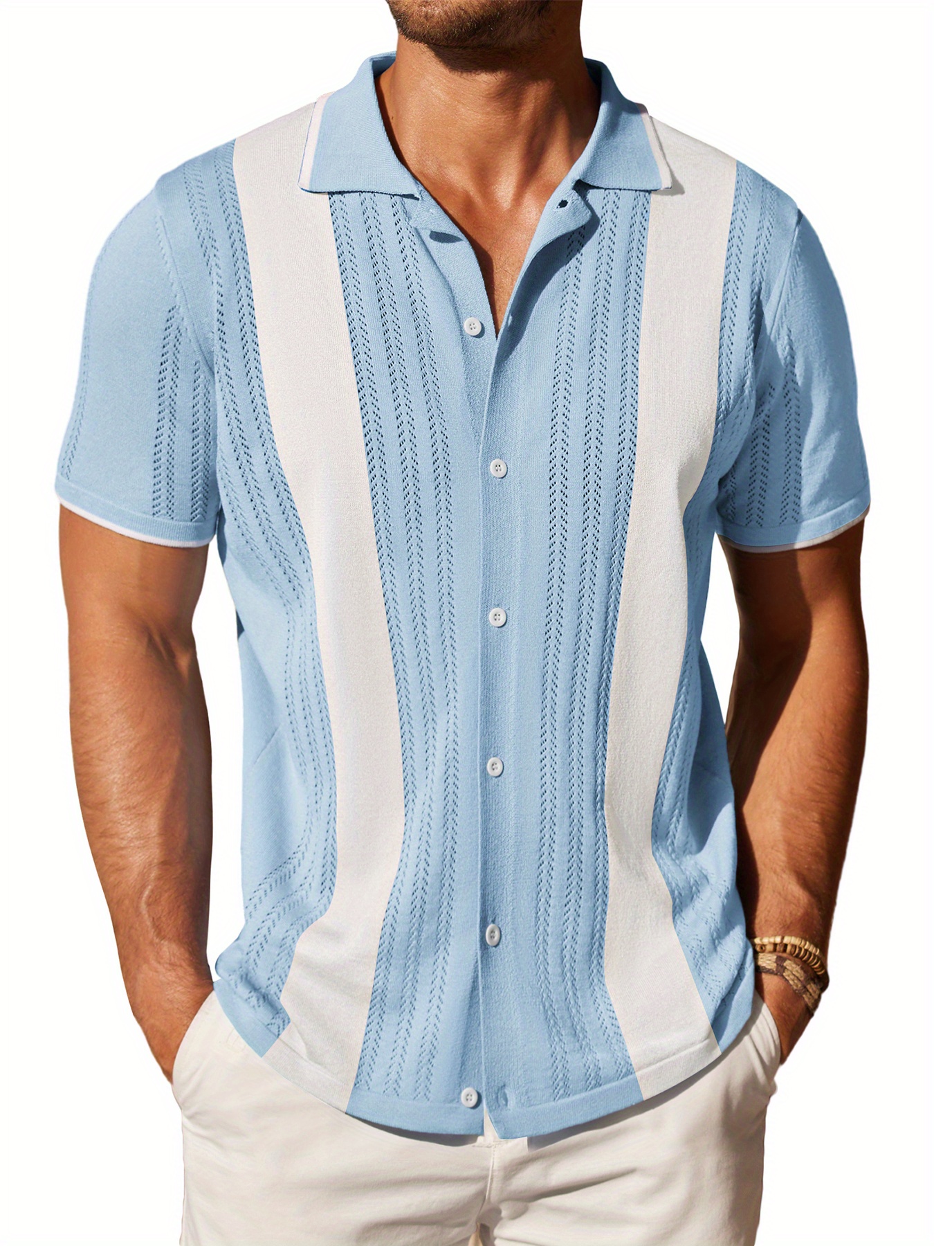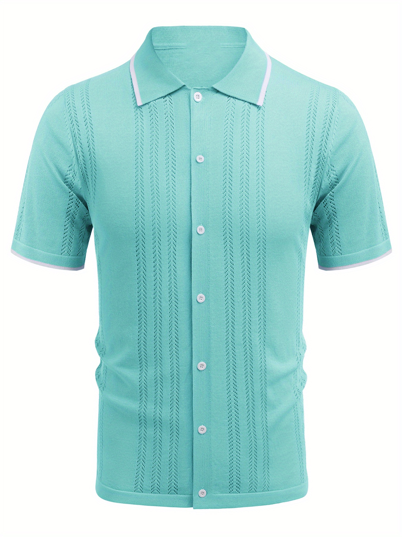 1pc Men'S Casual Knit Polo Shirt - Polyester Short Sleeve Lapel Collar, Slight Stretch Solid Color, Button Down Beach Top for Spring/Summer/Fall, Plus Size
