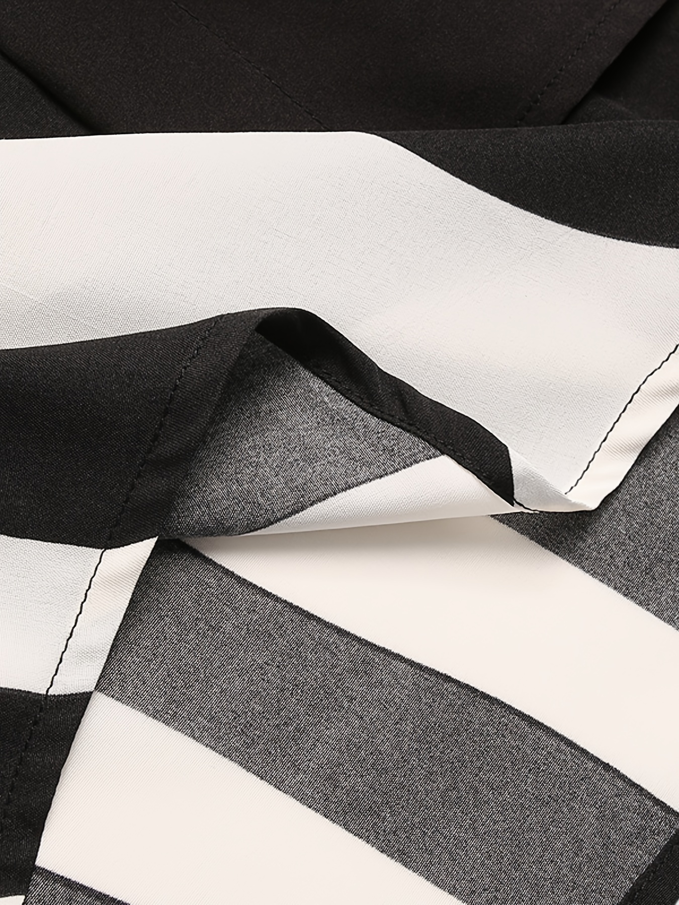 Plus Size Men's Long Sleeve Casual Shirt - Stripe Patchwork Design, Turn Down Collar, Button Closure, Polyester Fabric, Machine Washable and Dry Cleanable