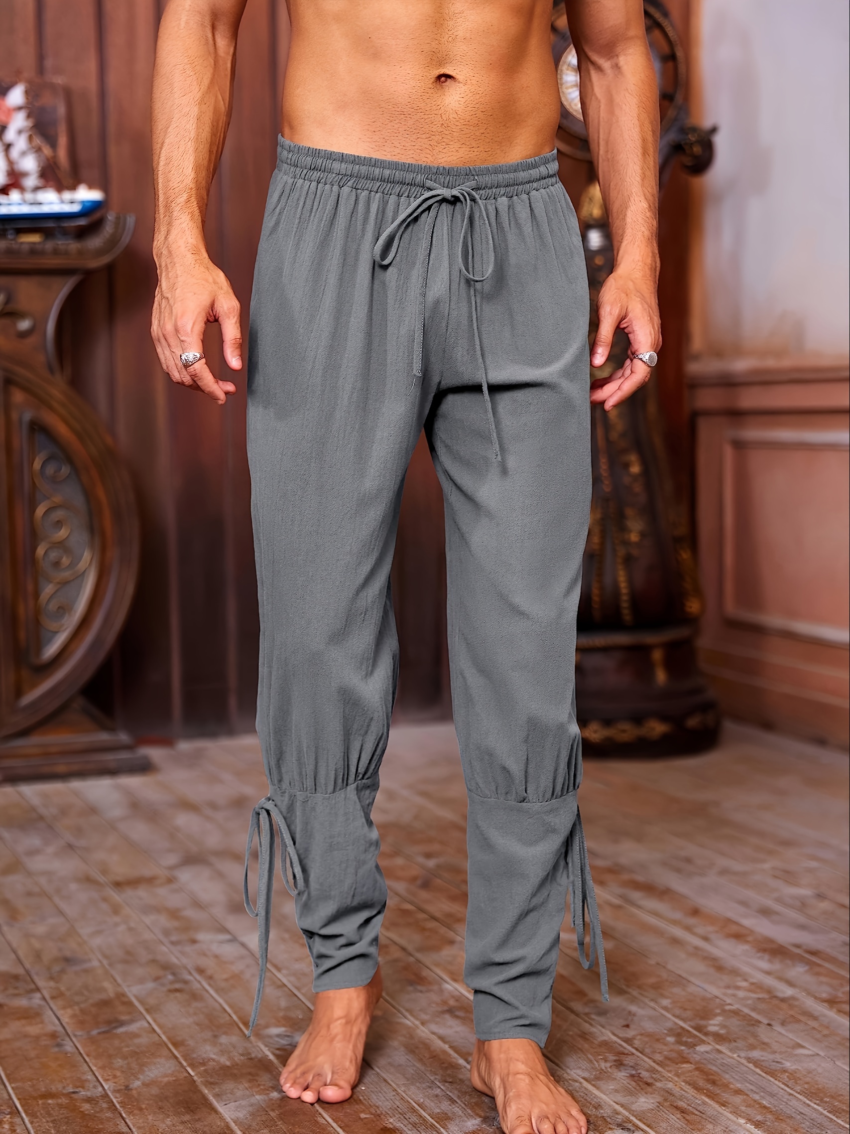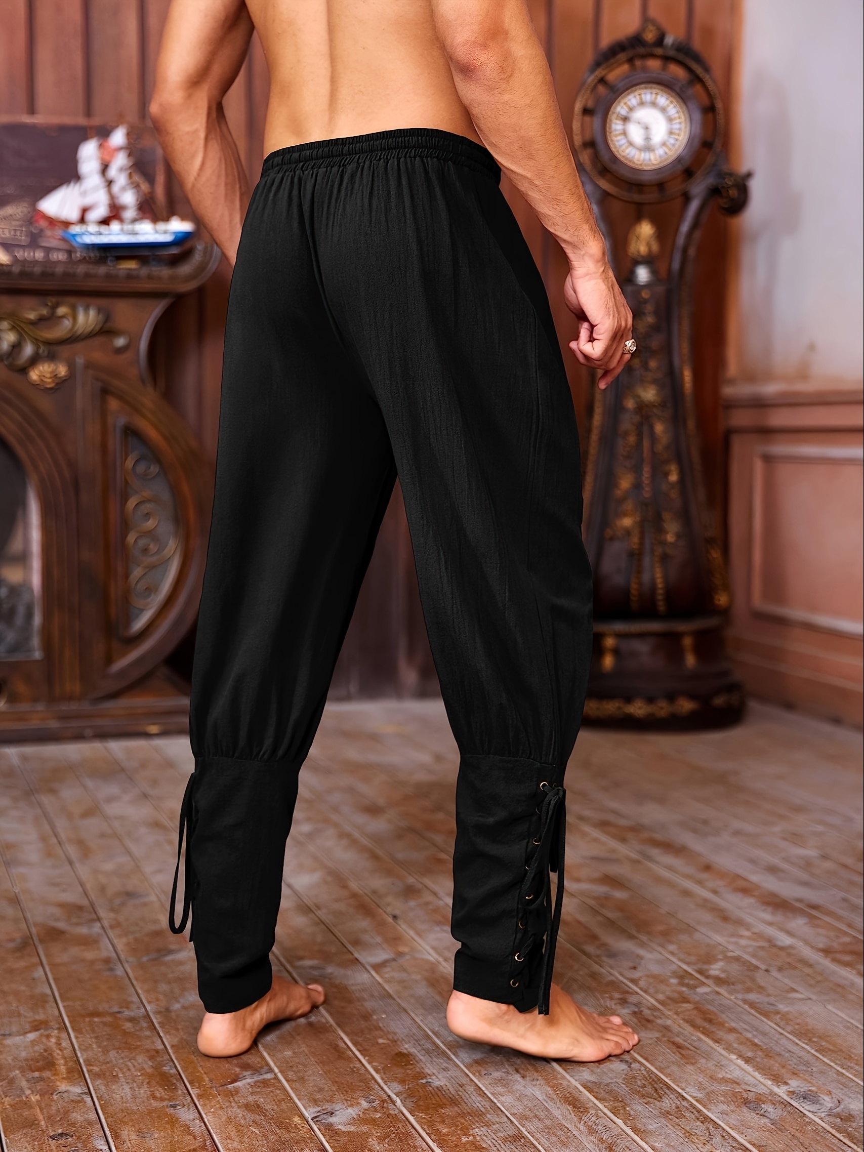 mens viking renaissance inspired casual pants with drawstring waist and tapered legs solid color polyester machine washable details 8