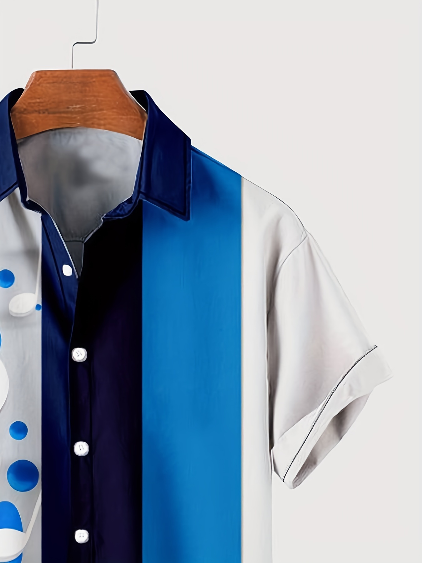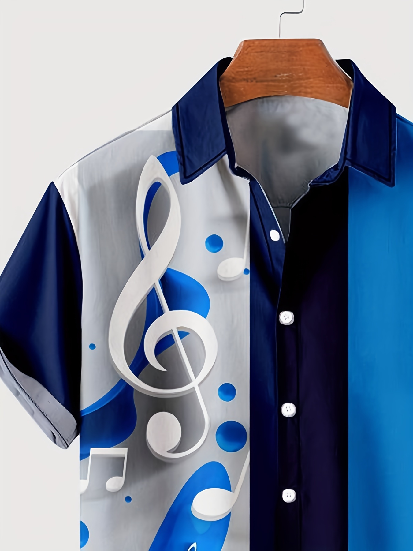 Plus Size Lapel Mens Hawaiian "Musical Note Striped" Pattern Button Down Shirts, Top Blouse Shirts, Short Sleeve, Bowling Dress Shirts