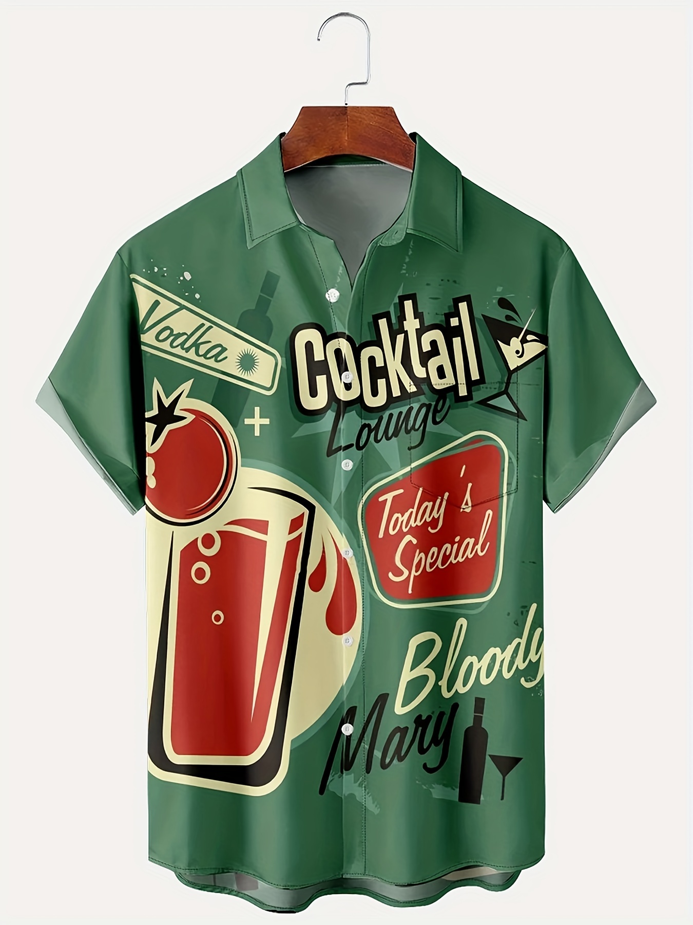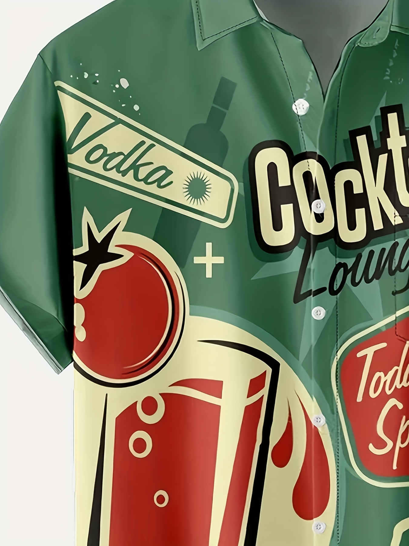 Plus Size Mens Hawaiian Shirt - Classic Lapel, Vintage Cocktail Print, Short Sleeve, Button Down, Chest Pocket - Perfect for Tropical Vacations and Outdoor Adventures