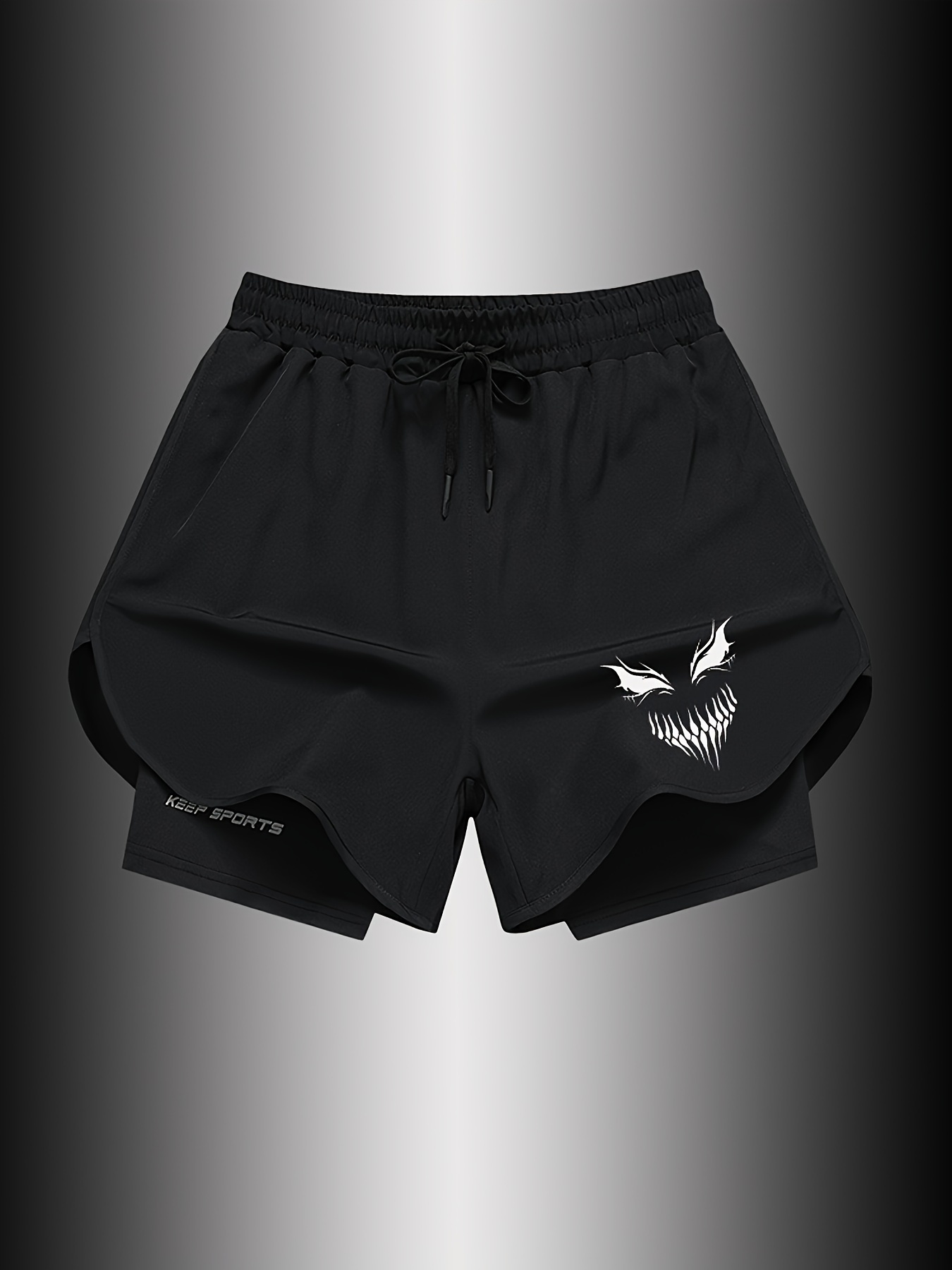 Smile Face Graphic Sports Shorts – Comfortable, Breathable, Quick-Drying, Drawstring Waist, Casual Training Running Fitness Shorts for Summer, Men’s Active Wear for Outdoor Activities