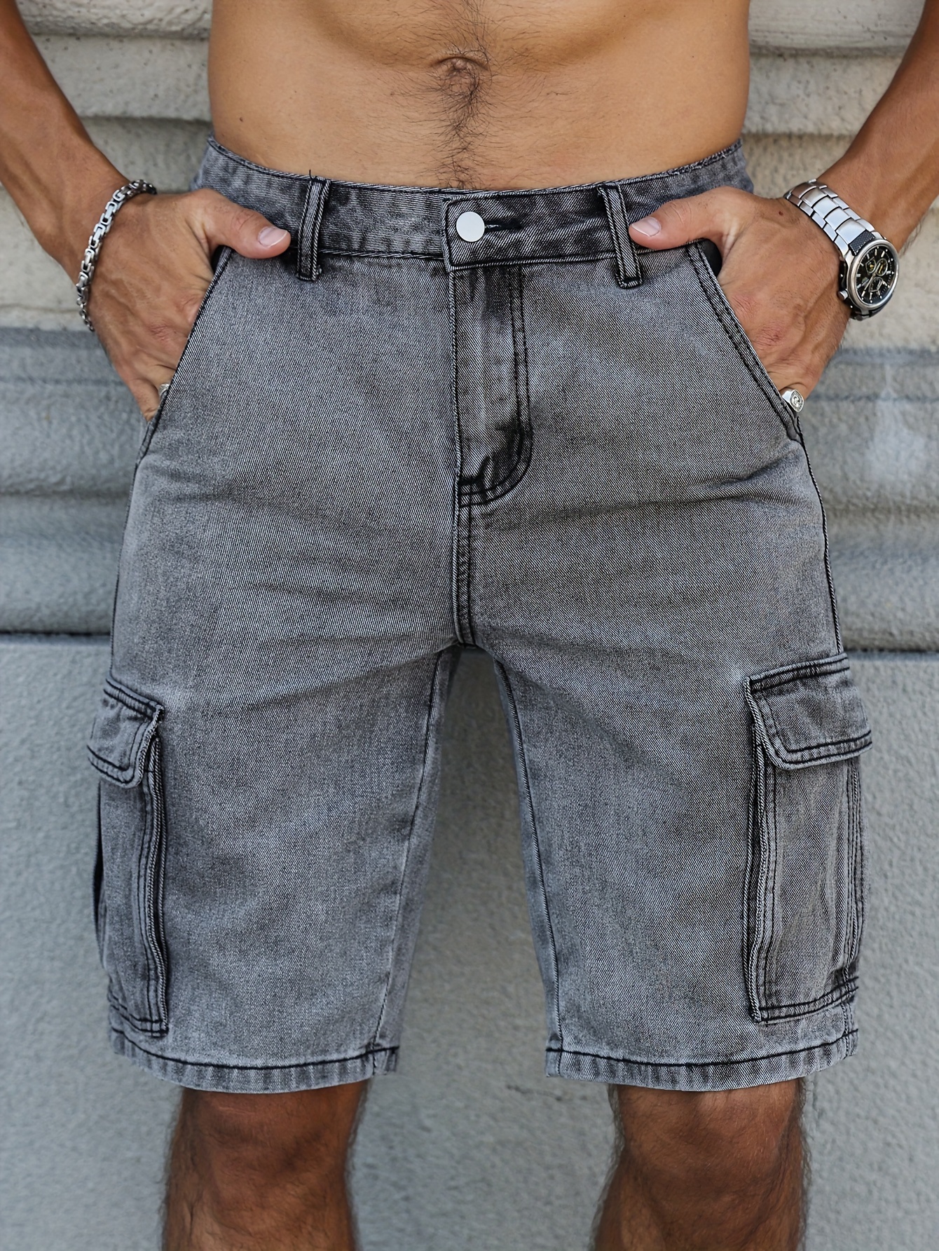Solid All-match Men’s Casual Cotton Comfy Cargo Shorts With Multiple Pockets, Summer Outdoor And Leisure, Without Belt, Bermuda Shorts