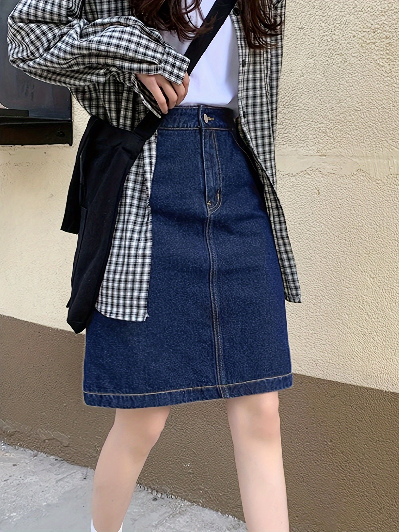 Plain Dark Washed Blue High Rise Basic Versatile Style Denim Skirt, Women’s Denim Jeans & Clothing