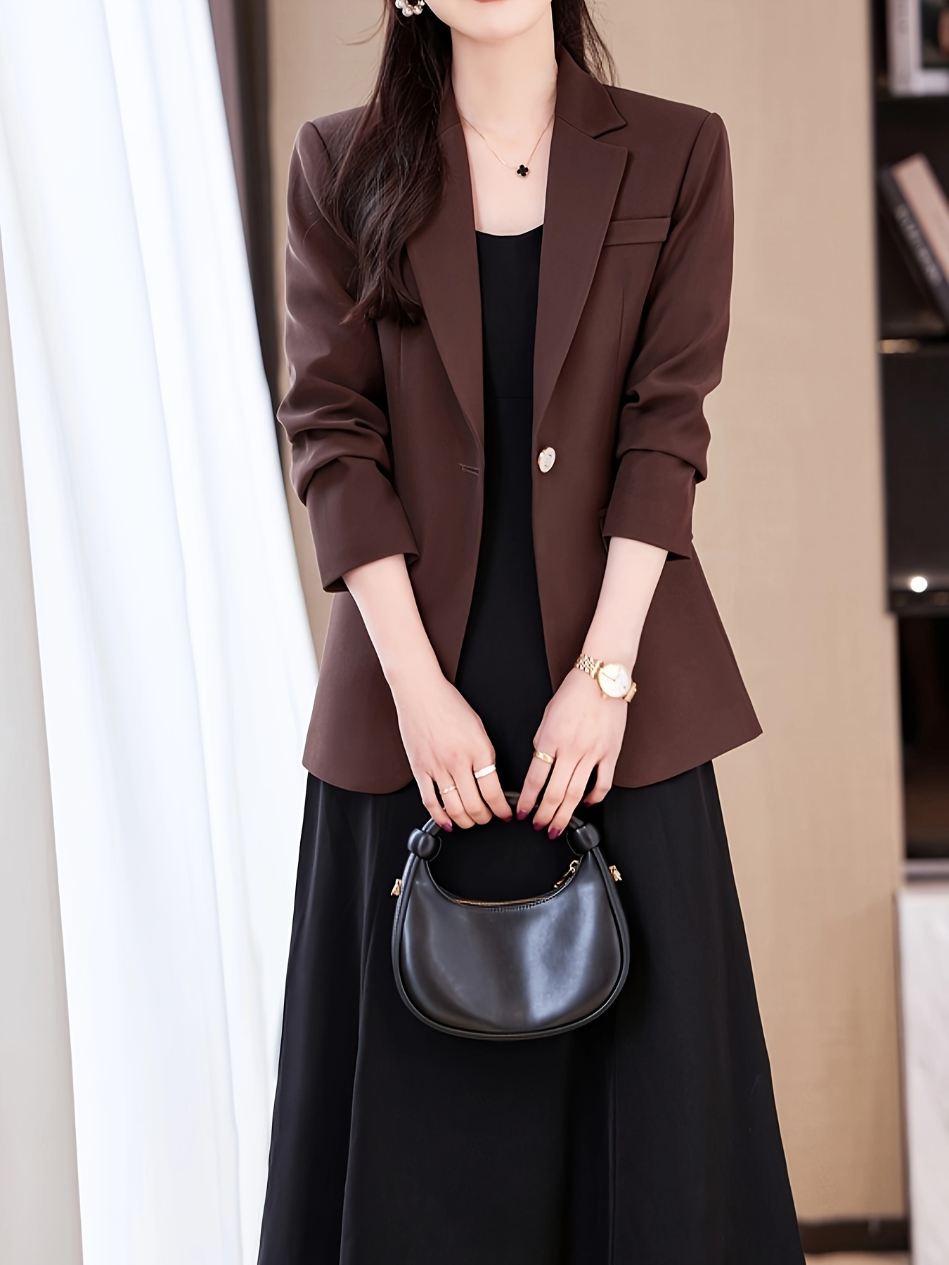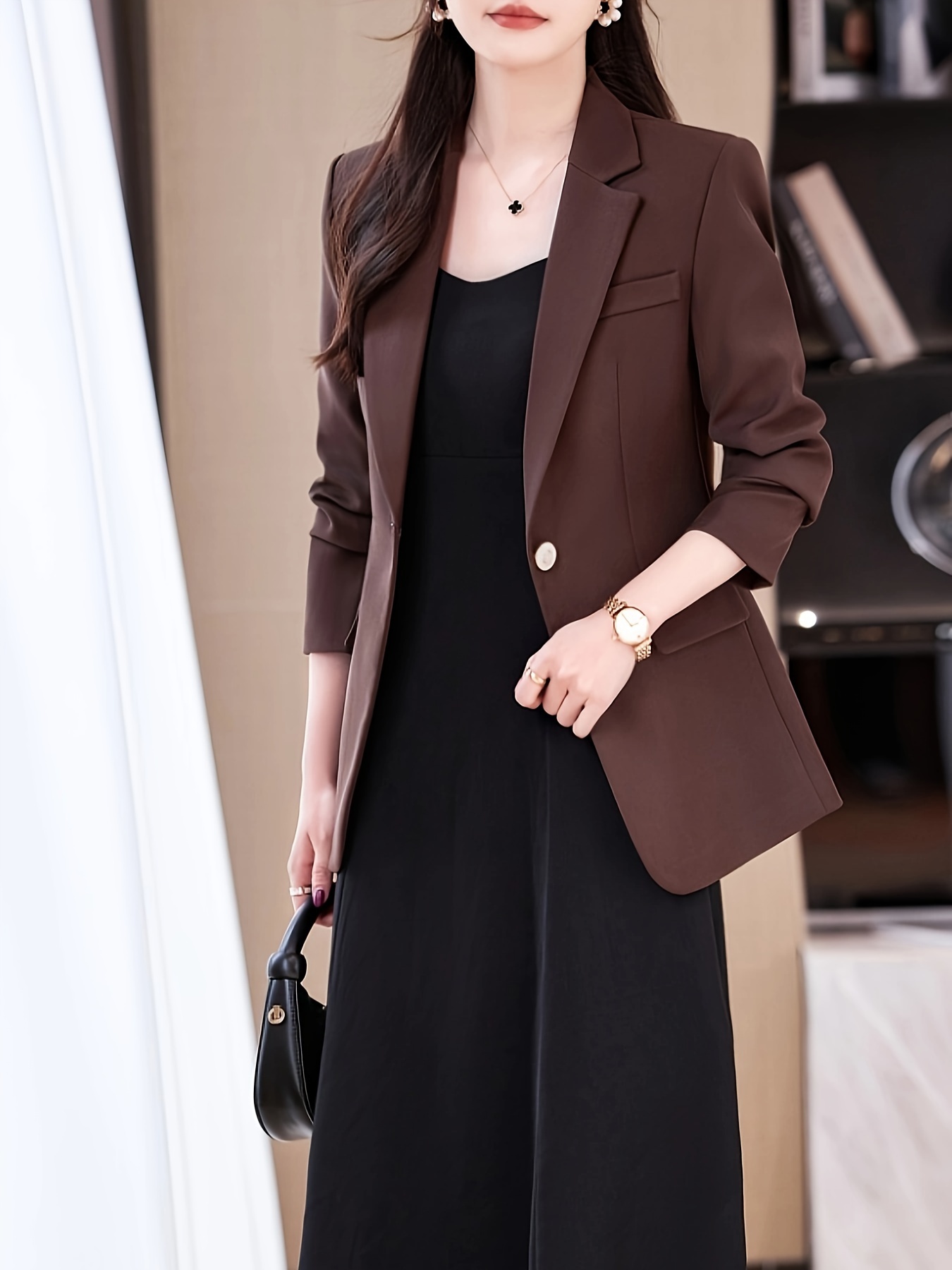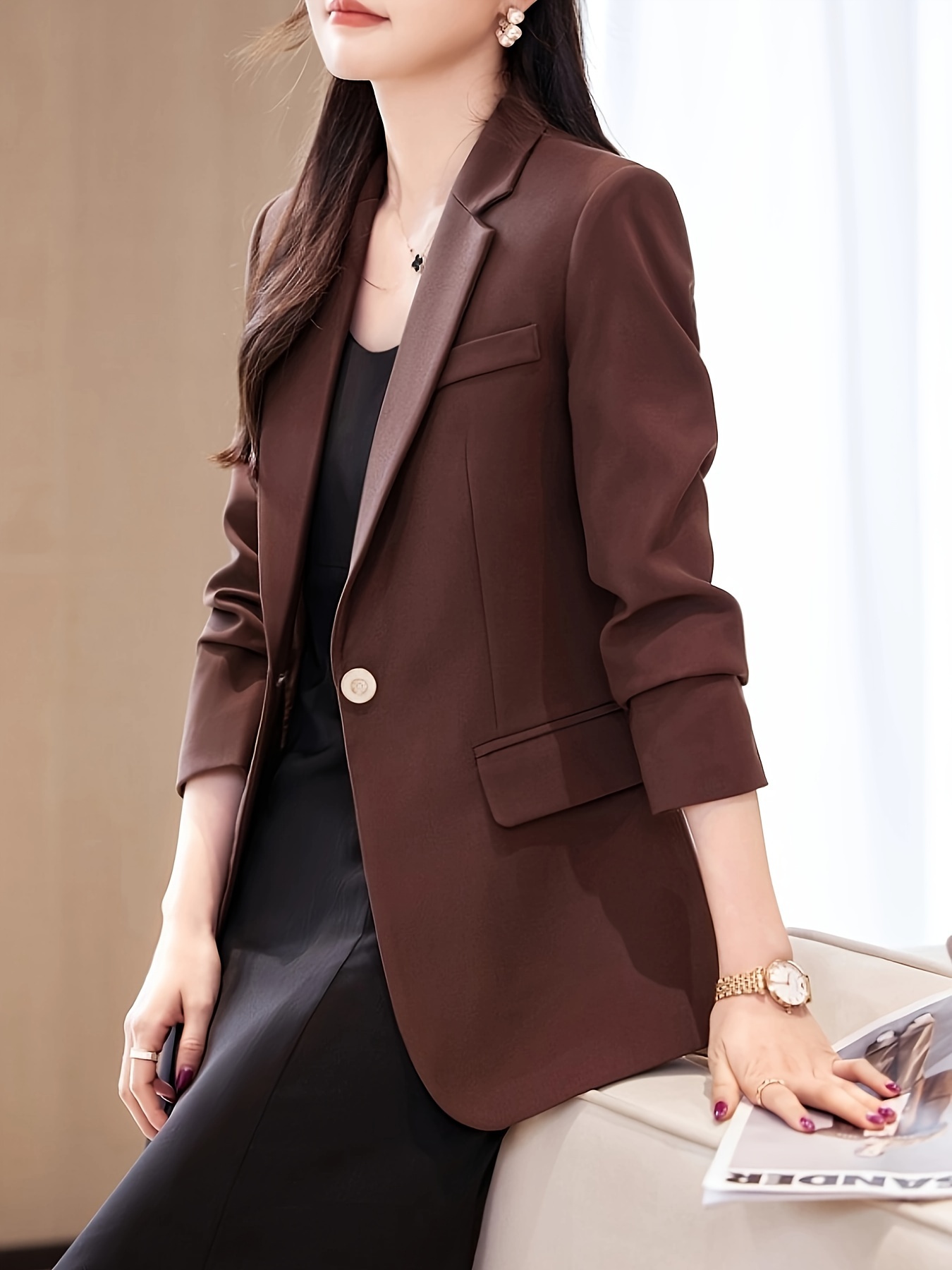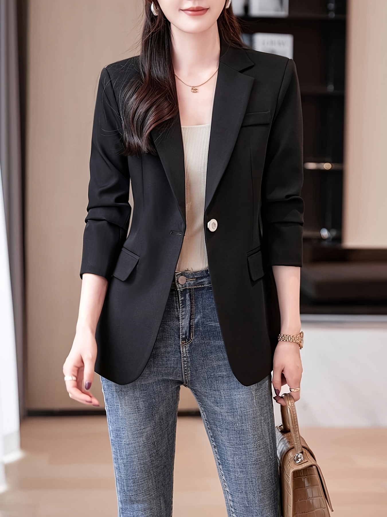 Chic Womens Button Lapel Blazer – Stylish Lapel Collar, Comfortable Long Sleeves – Perfect for Office & Work – Premium Fabric, Modern Fit – Fashionable Wardrobe Staple