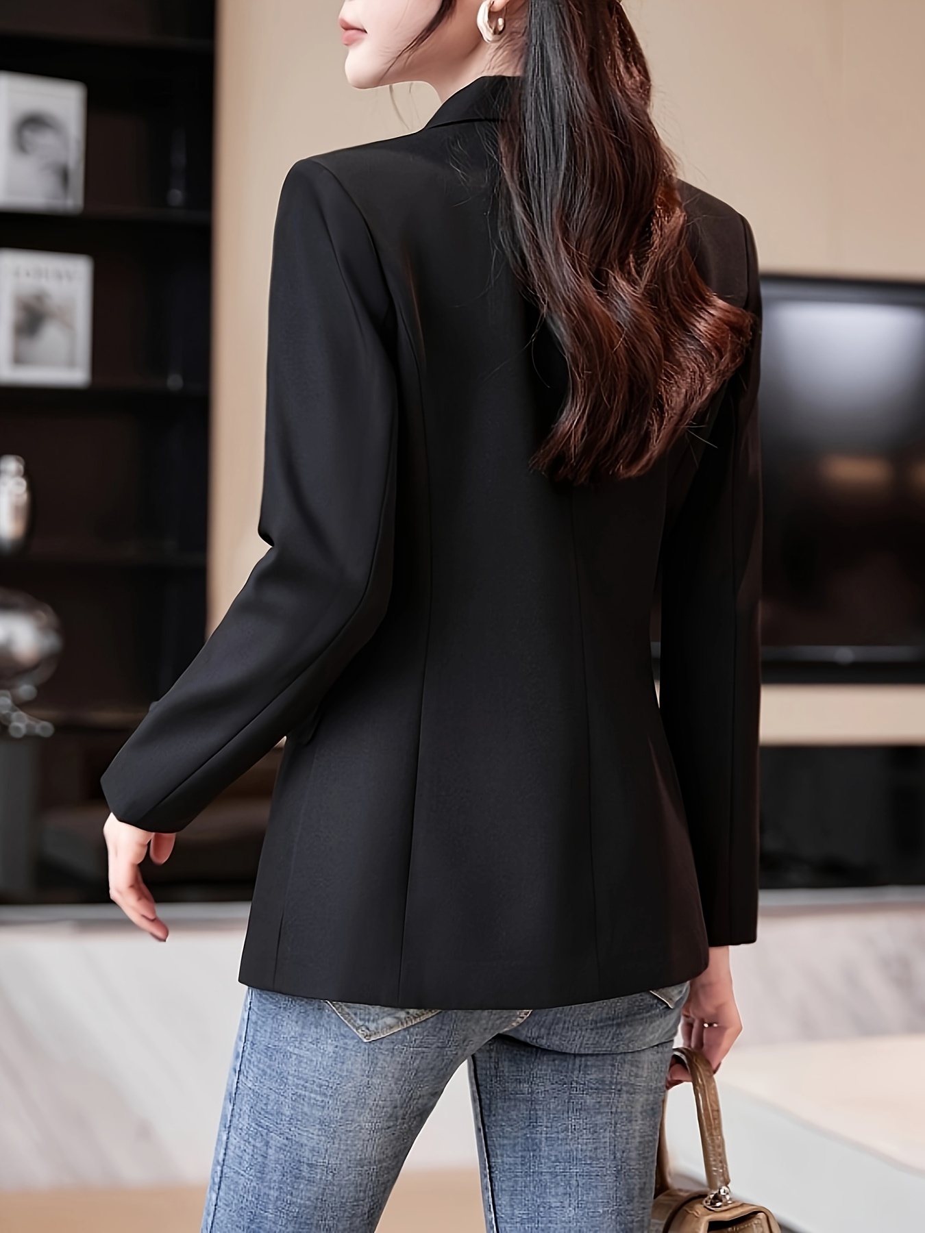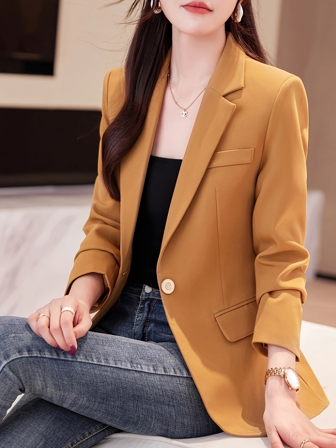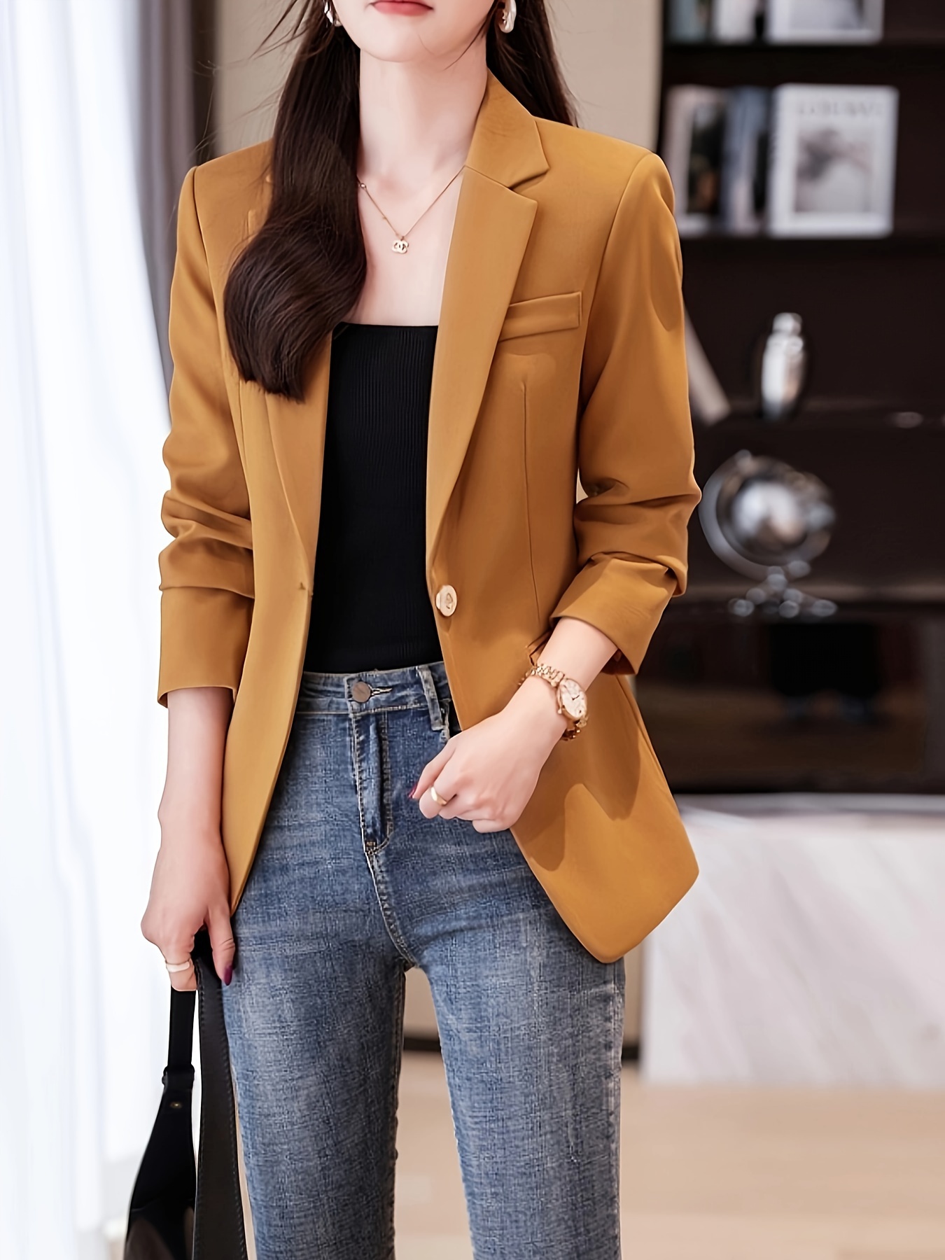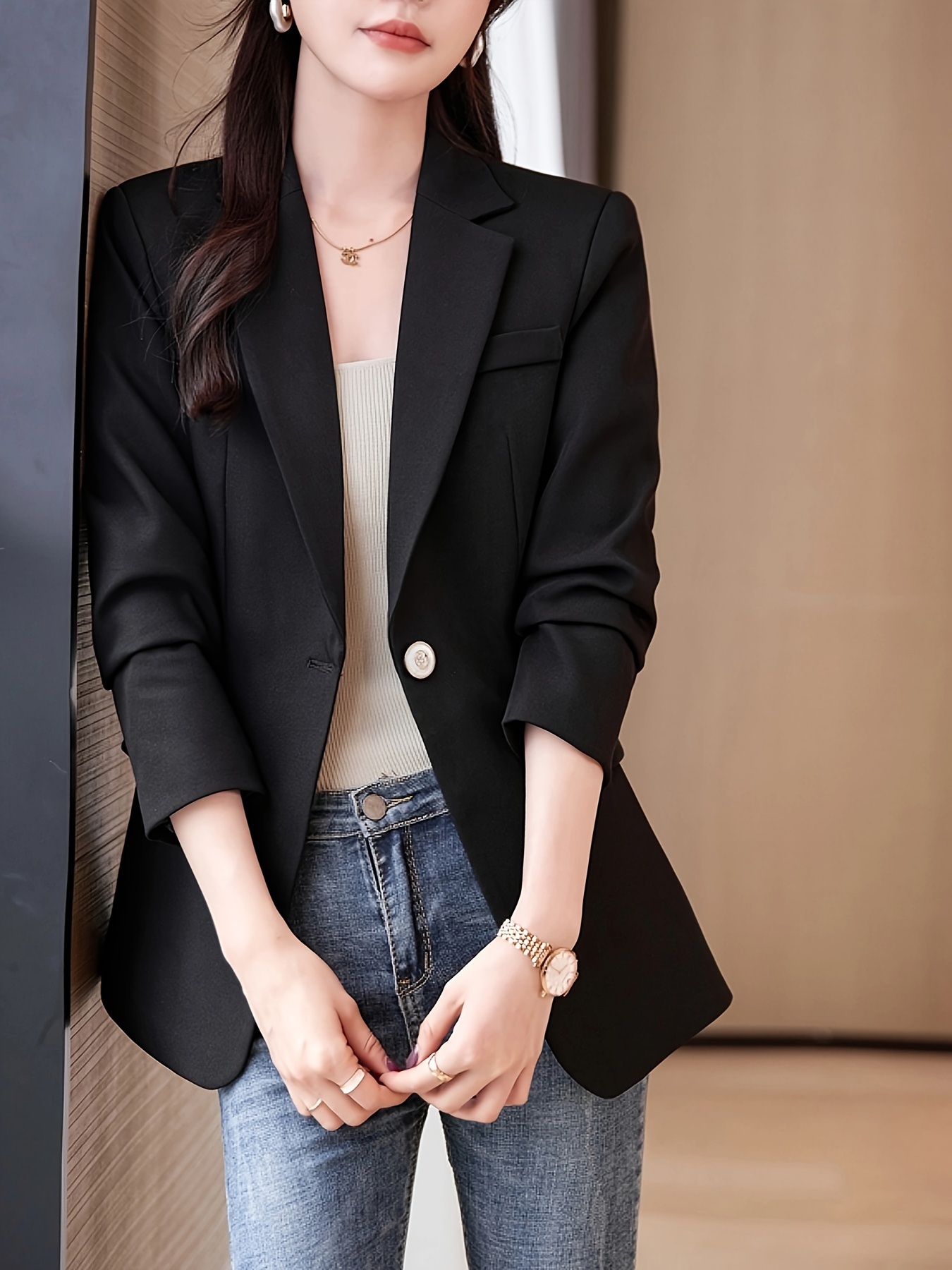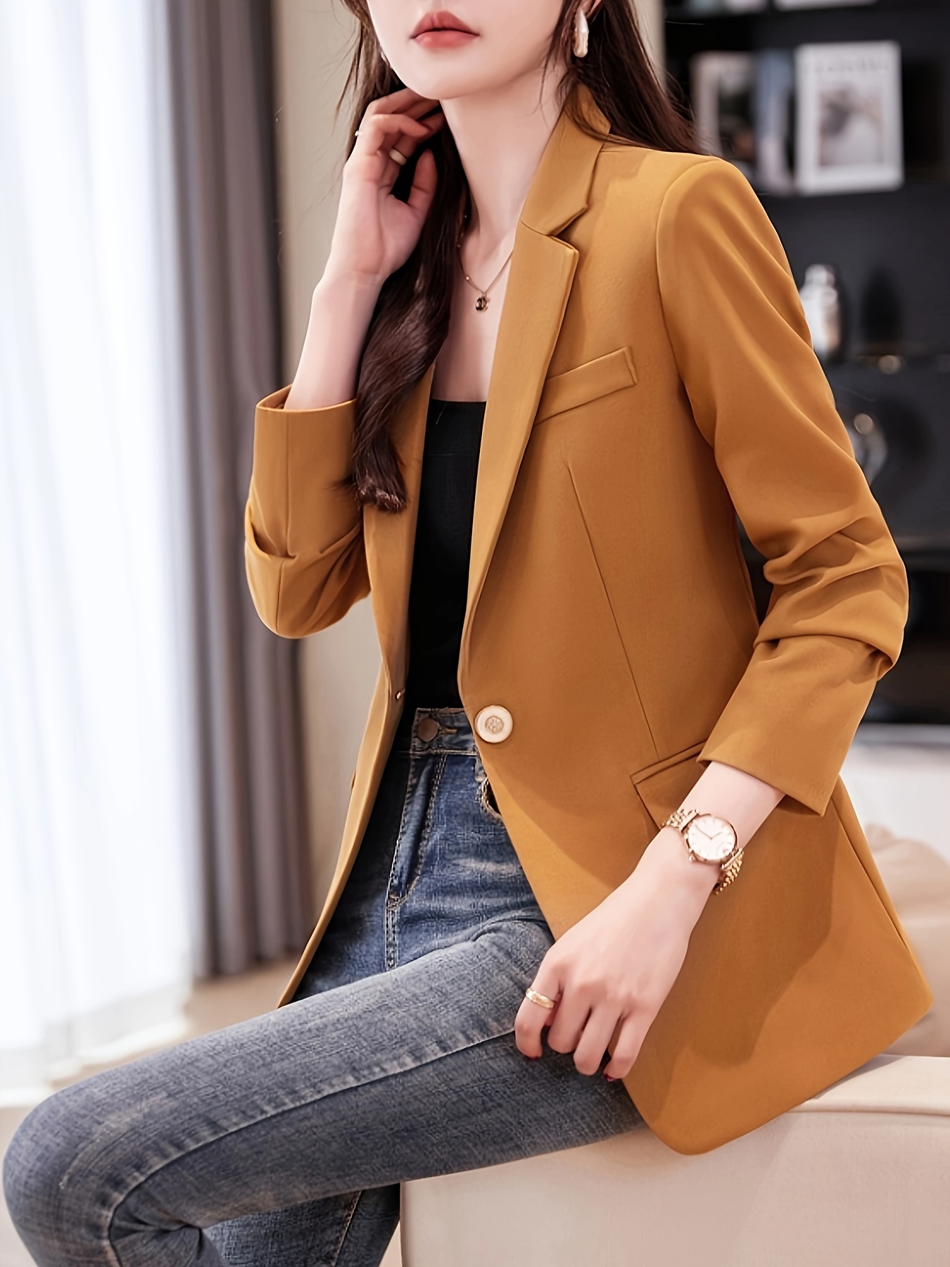 Chic Womens Button Lapel Blazer – Stylish Lapel Collar, Comfortable Long Sleeves – Perfect for Office & Work – Premium Fabric, Modern Fit – Fashionable Wardrobe Staple