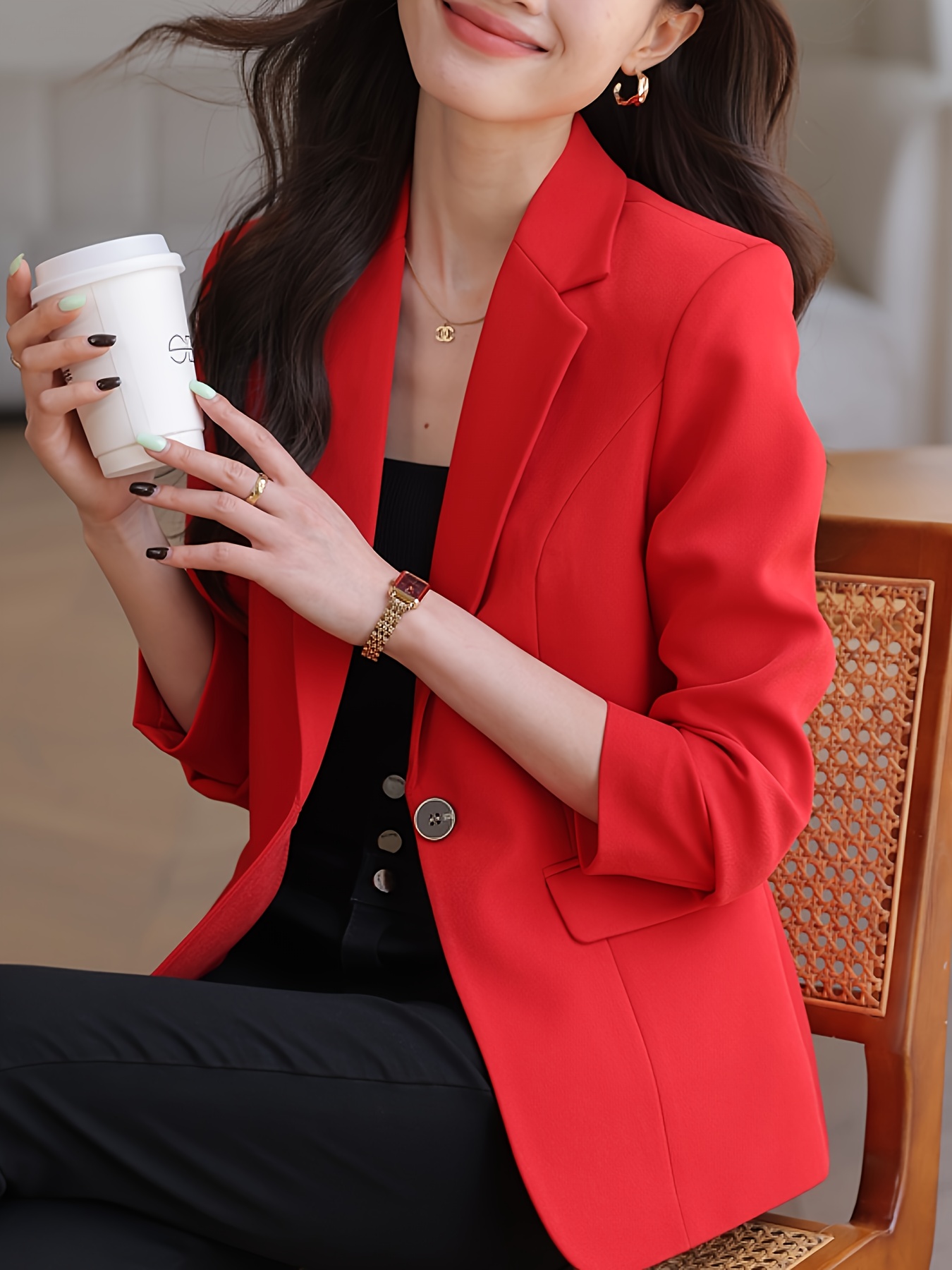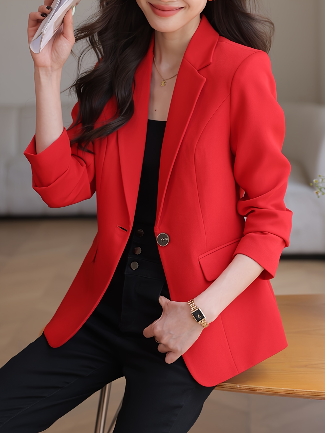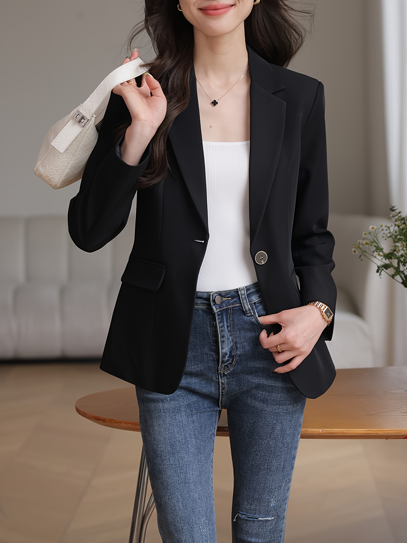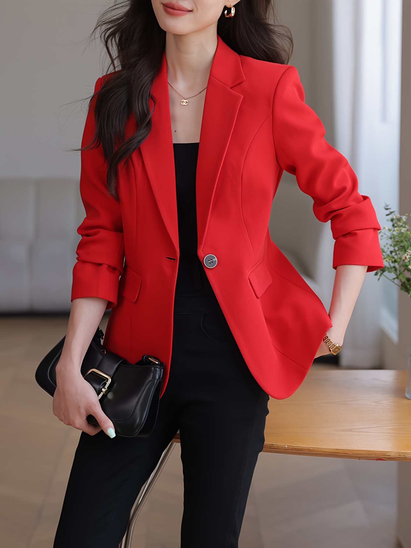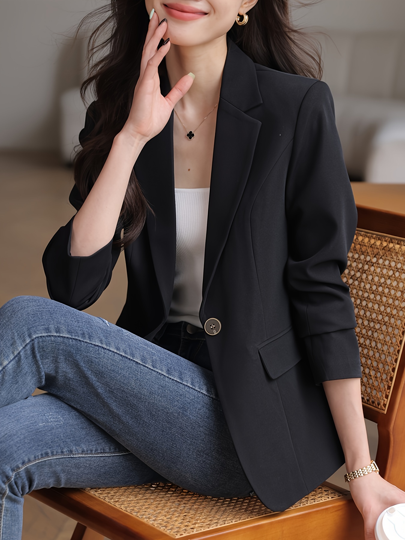 The price of Elegant Solid Color Long Sleeve Blazer – Classic Lapel Neck, Front Button Closure, Office-Ready, Work-Appropriate, Women’s Professional Clothing for Daily Wear is really cheap compare to other websites.Really happy I found this website.