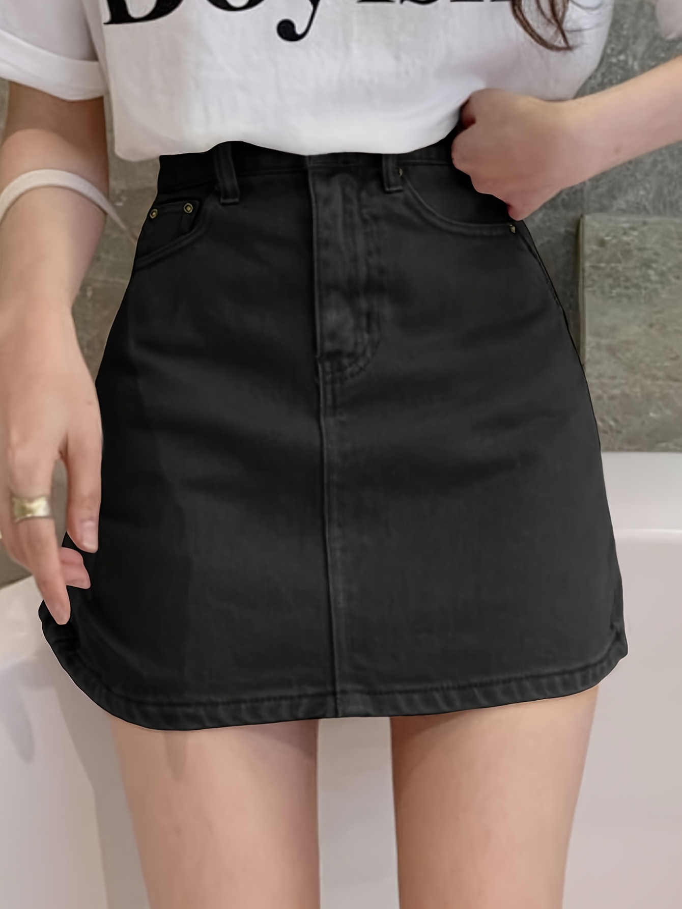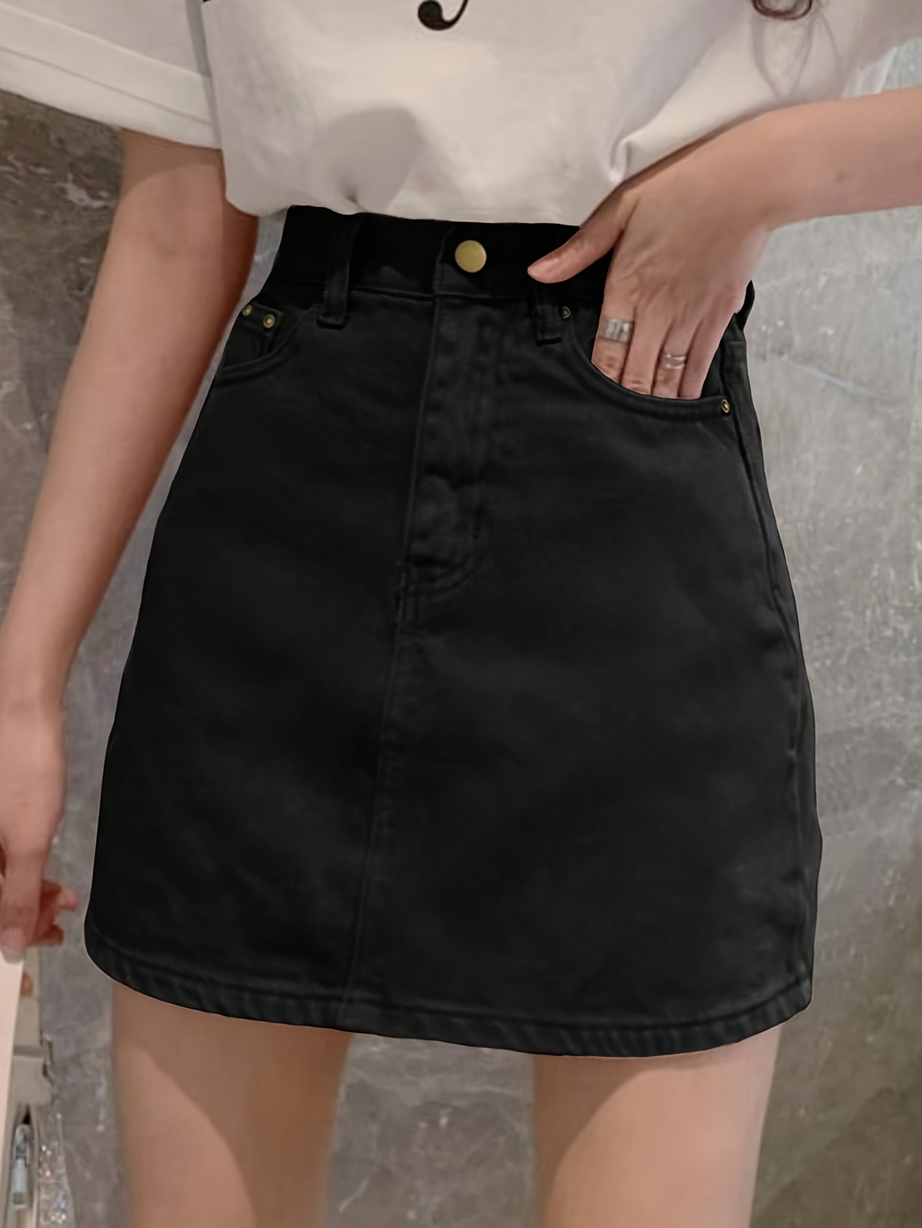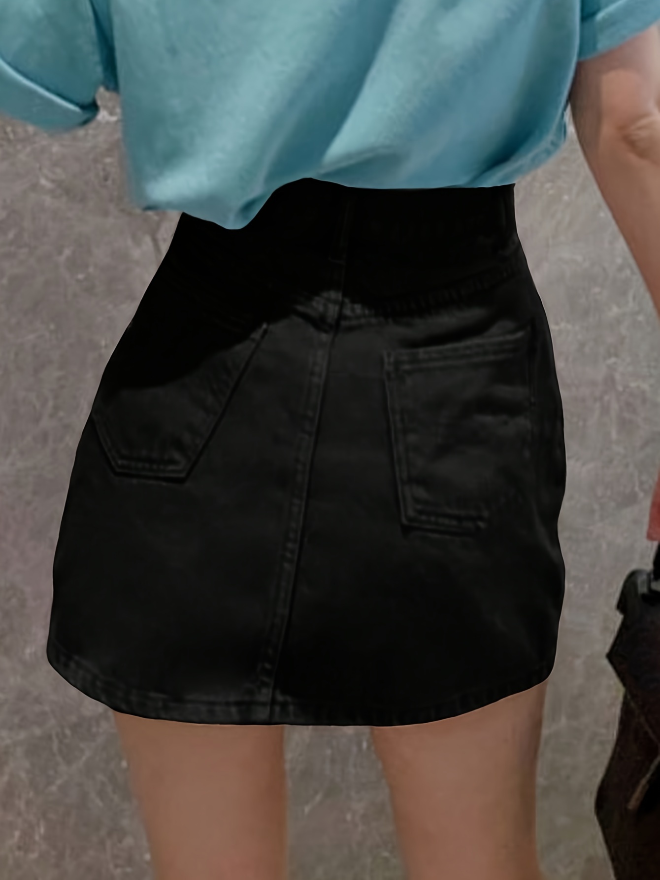High-Rise A-Line Mini Denim Skirt, Black Color, Casual Style, Women’s Denim Jeans & Clothing