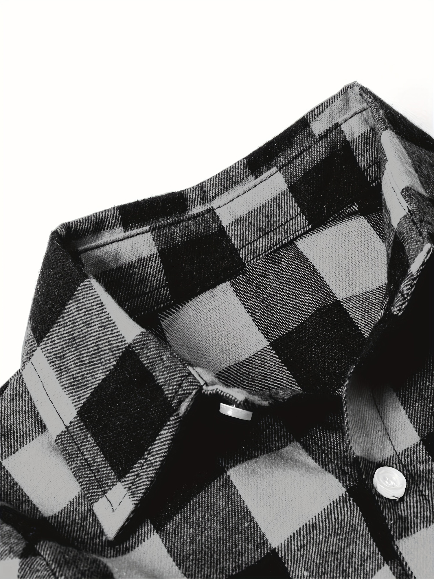 Men’s Plus casual long sleeved shirt, featuring a collar design and checkered pattern that exudes vitality, and a more convenient pocket design.