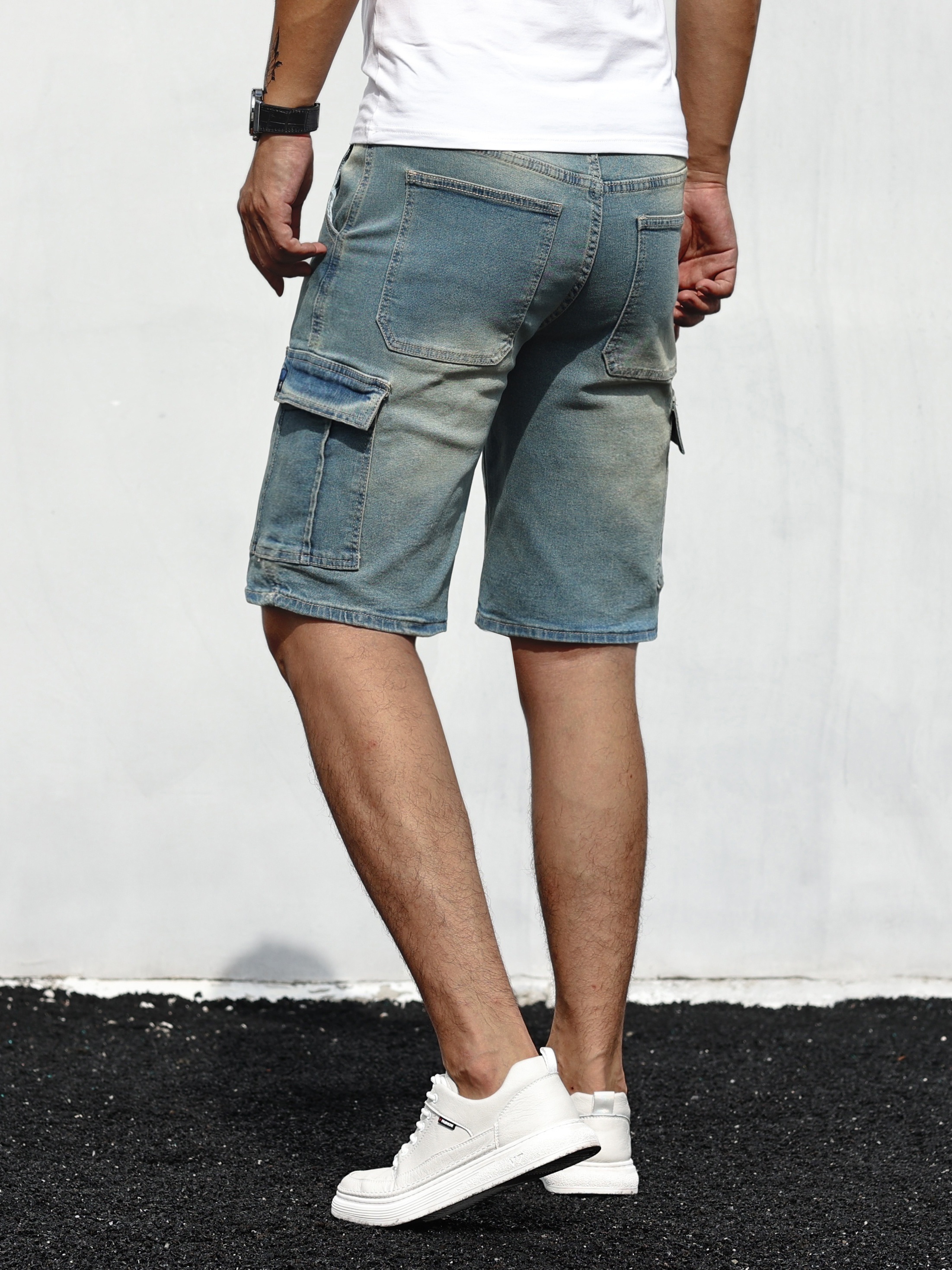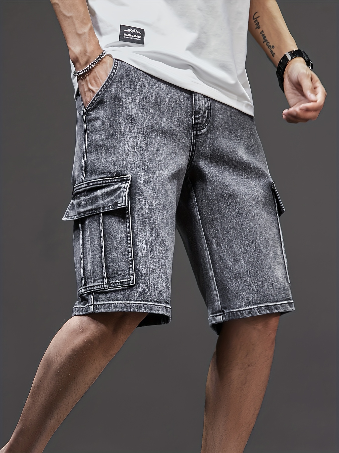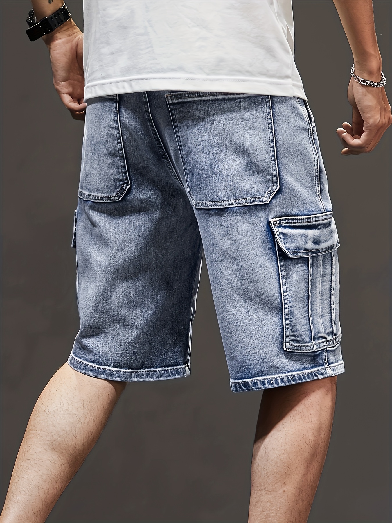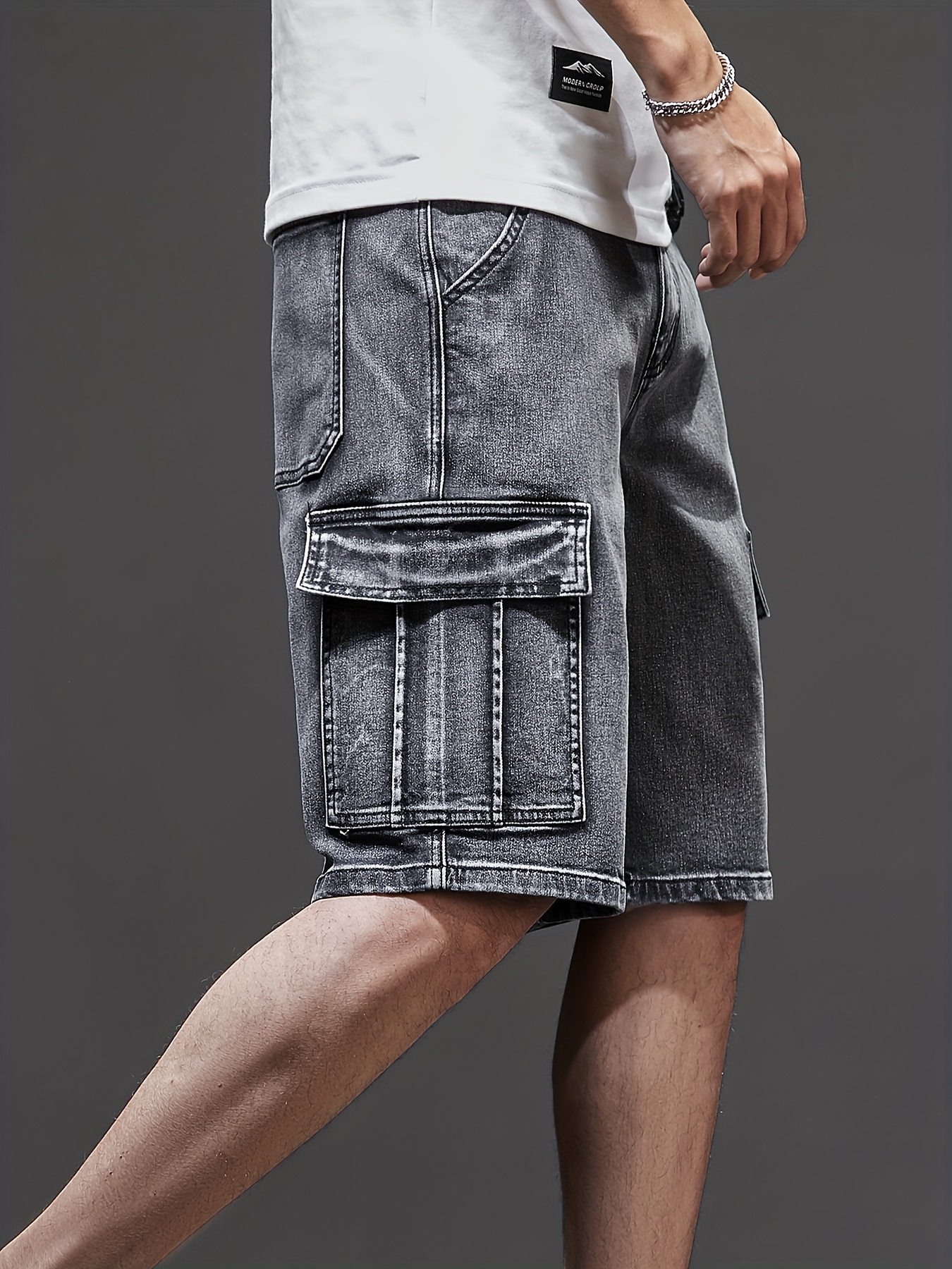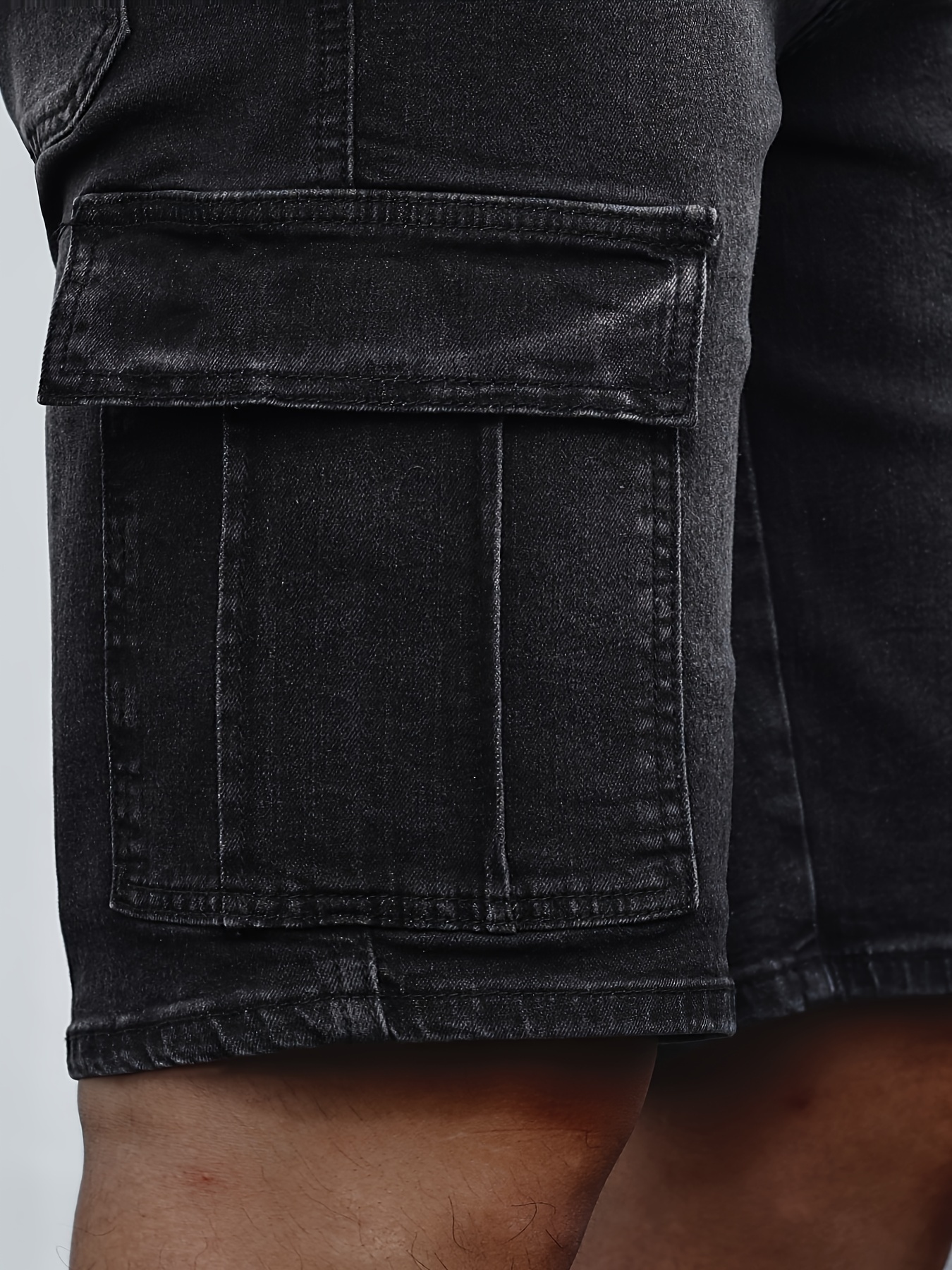 Men’s Solid Denim Shorts With Flap Pockets, Casual And Trendy Cargo Shorts For Summer Outdoors Wear