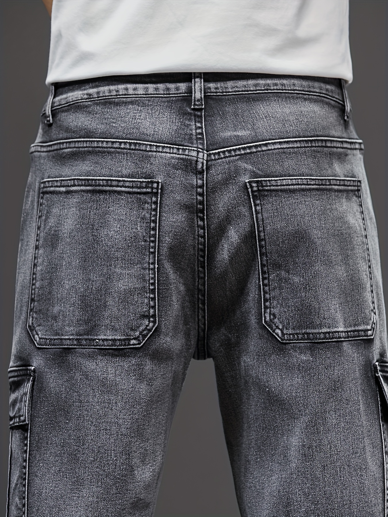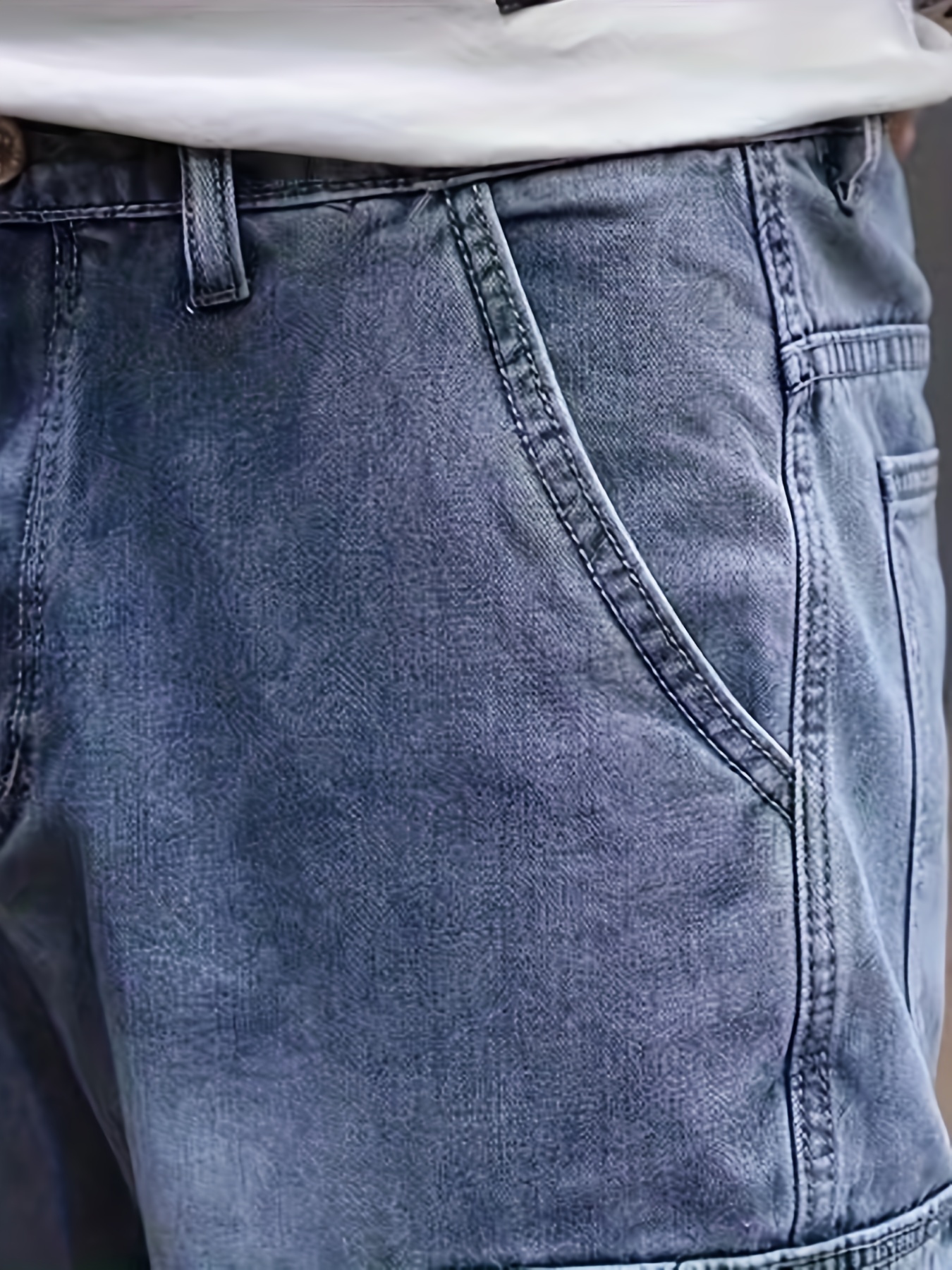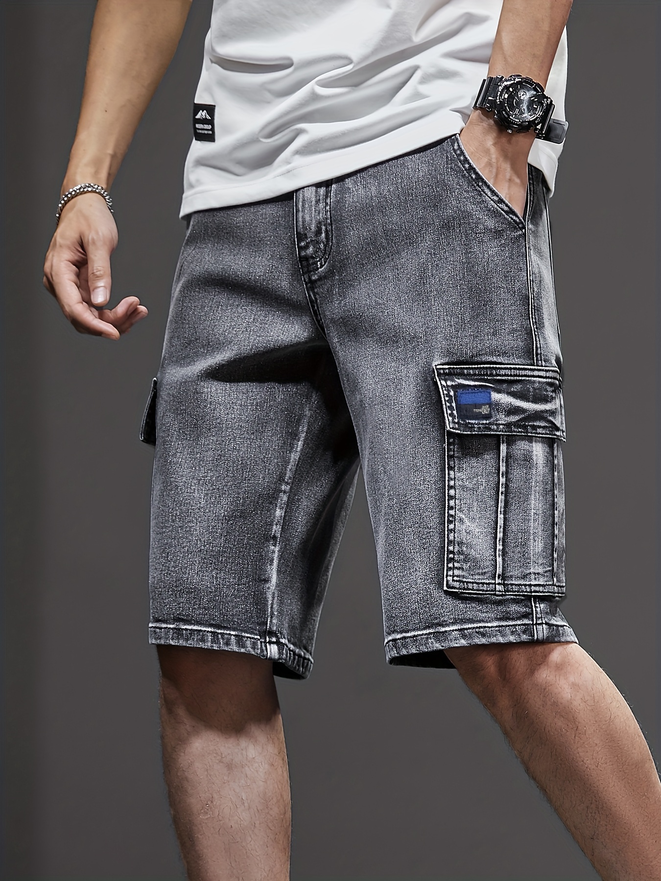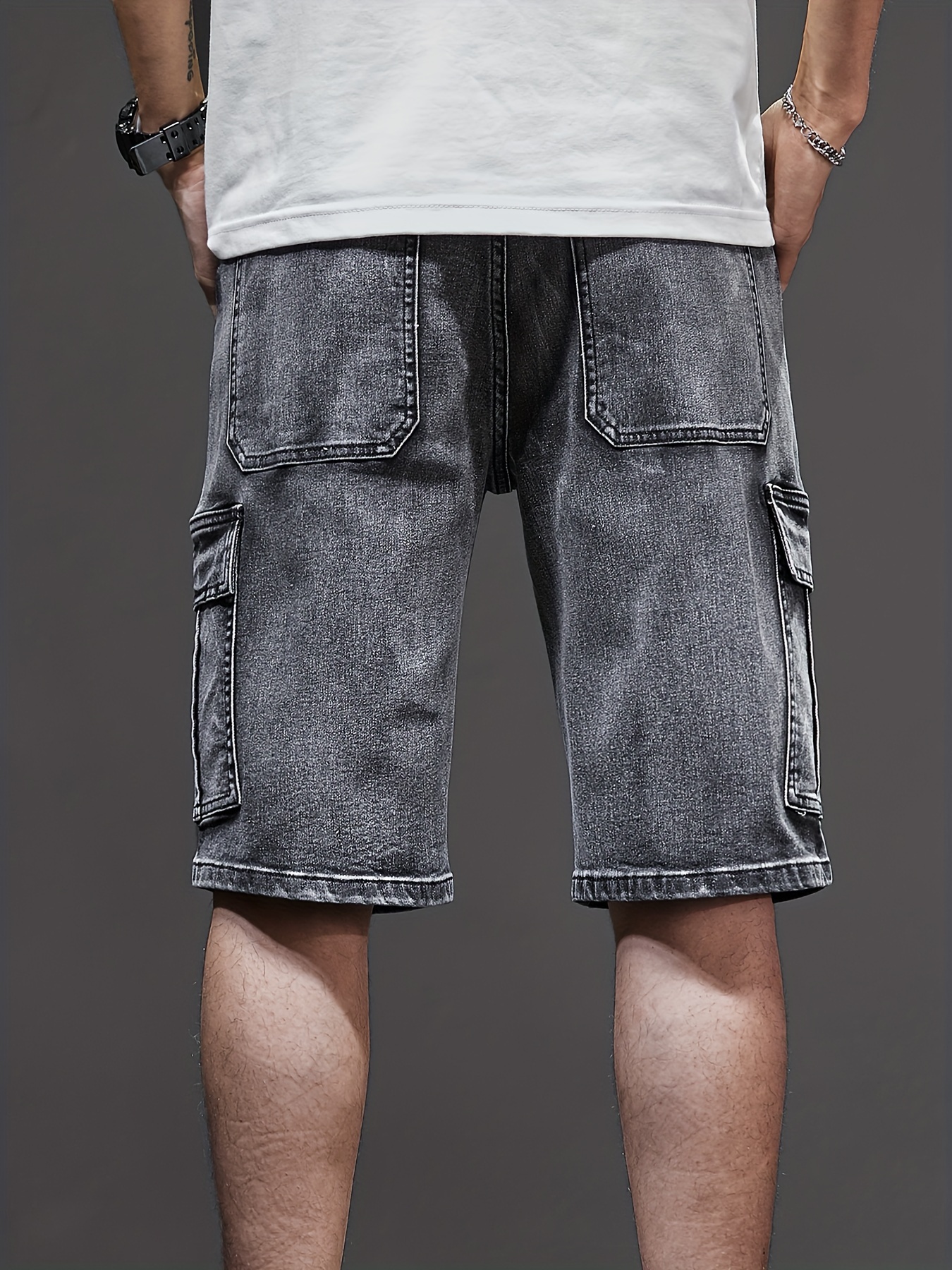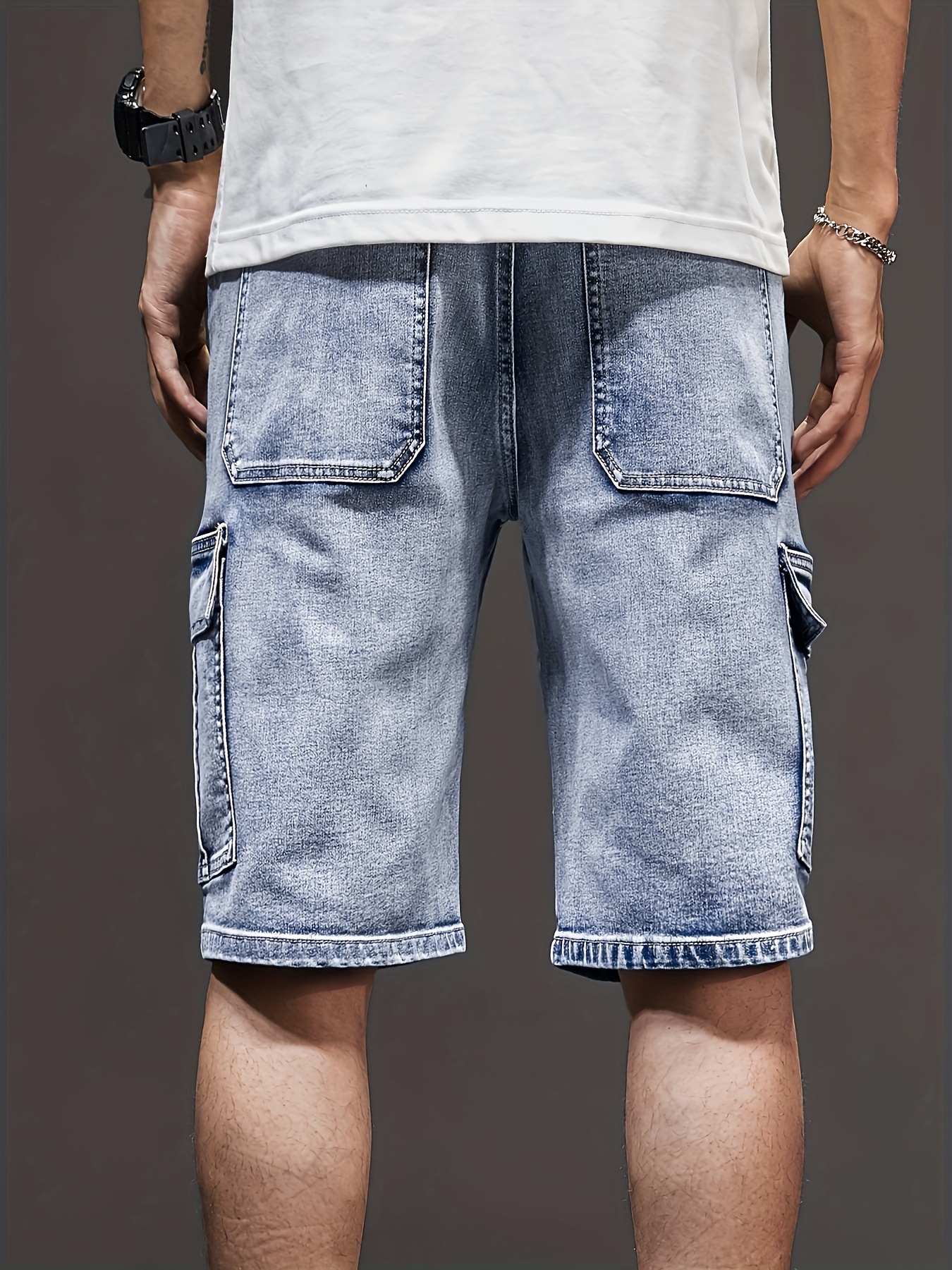 Men’s Solid Denim Shorts With Flap Pockets, Casual And Trendy Cargo Shorts For Summer Outdoors Wear