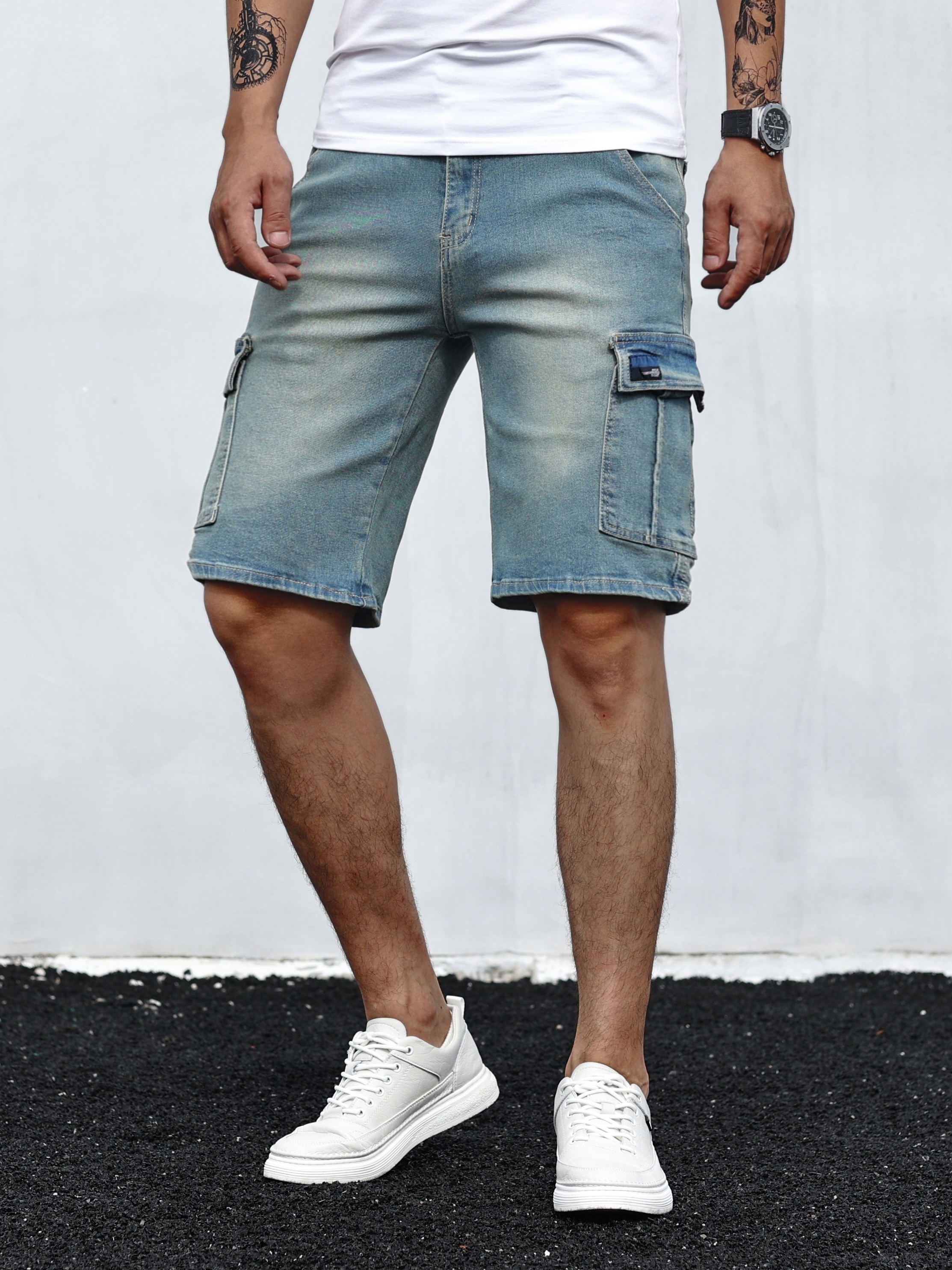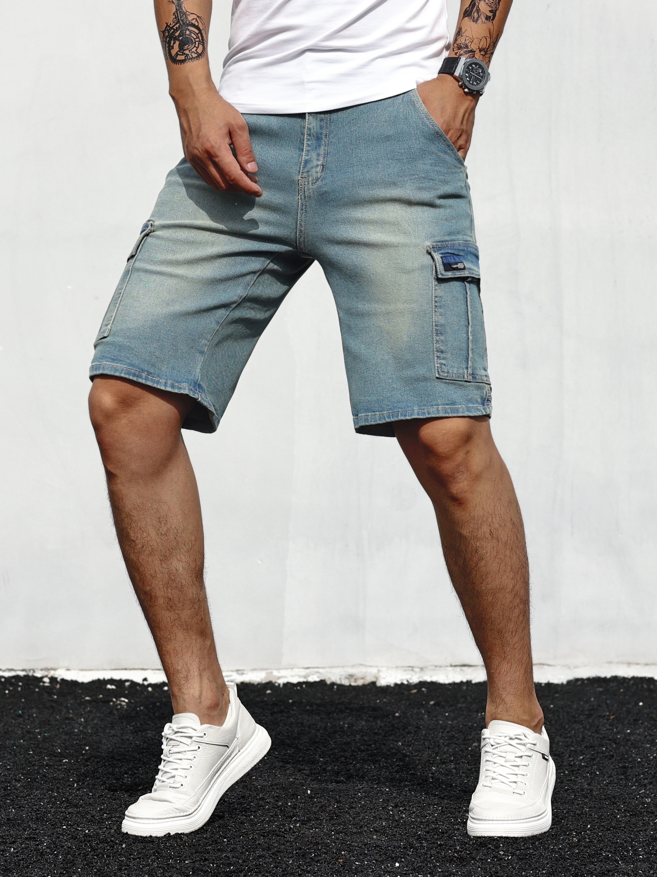 7 reviews for Men’s Solid Denim Shorts With Flap Pockets, Casual And Trendy Cargo Shorts For Summer Outdoors Wear