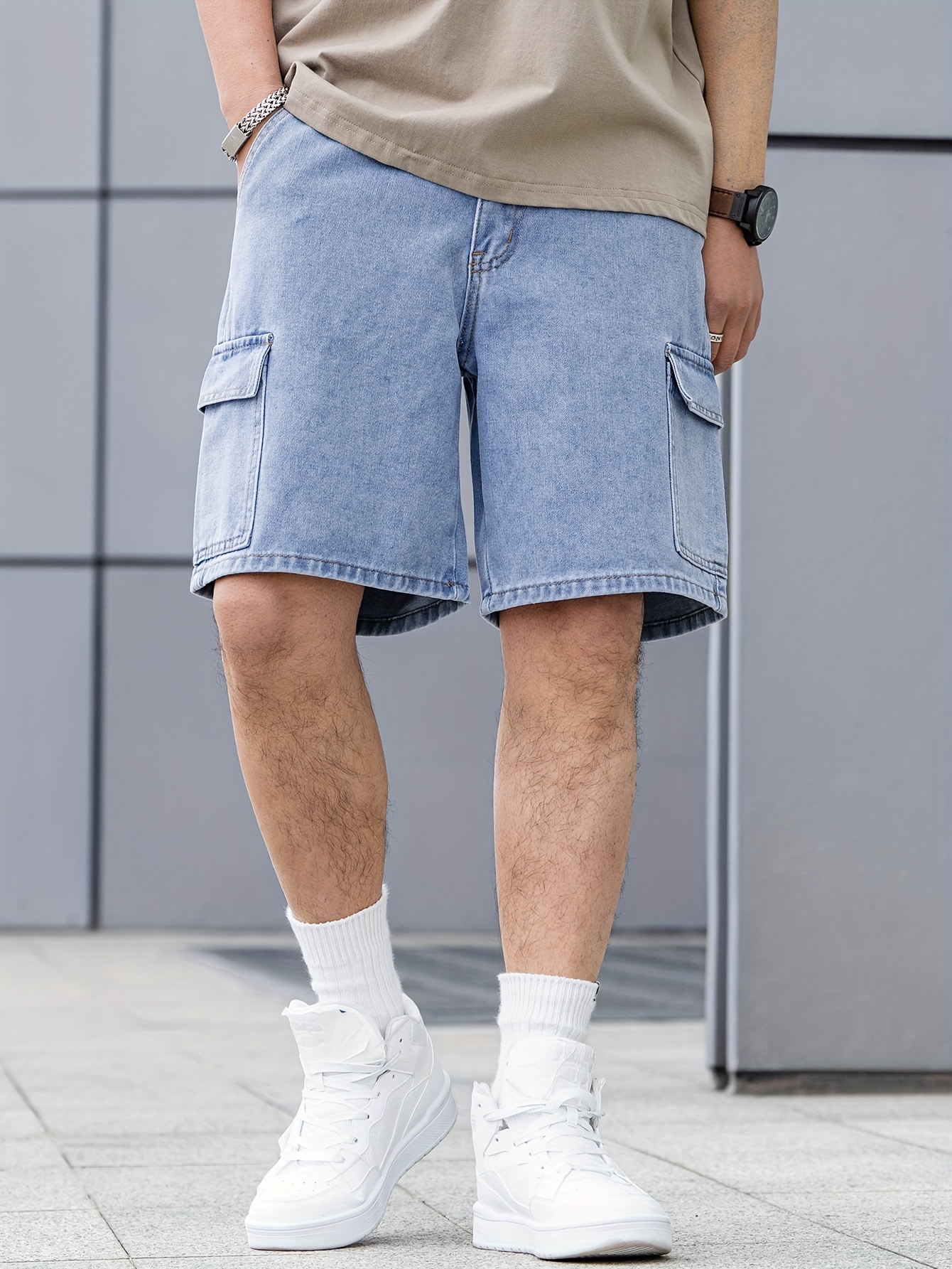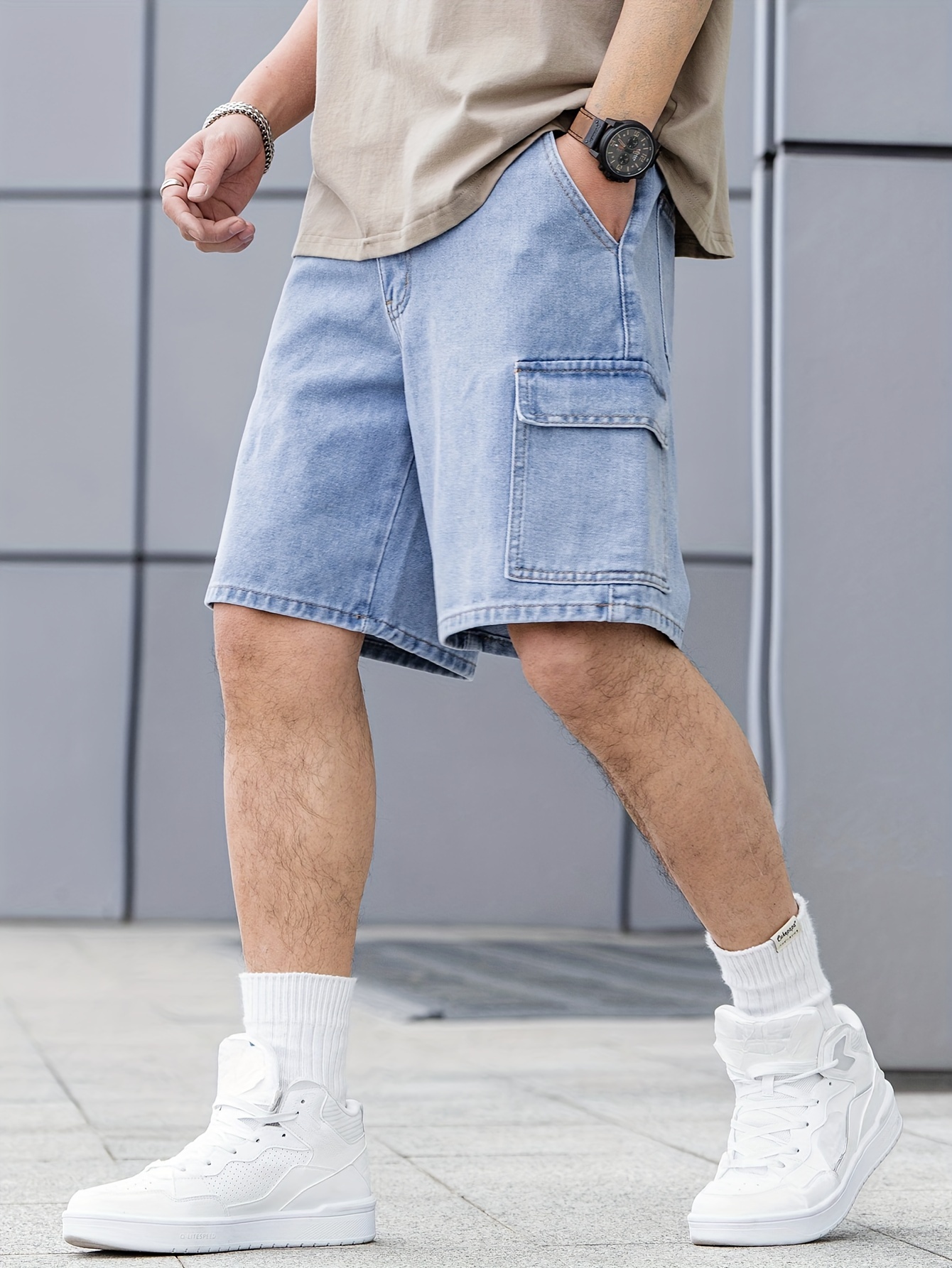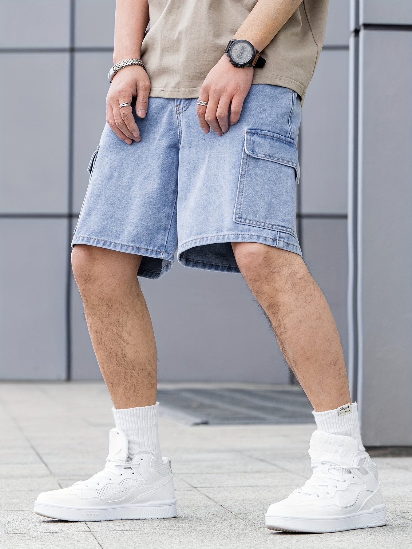 Mens Trendy Denim Shorts – Loose Fit & Comfortable – Stylish Flap Pockets for Summer – Premium Jeans Shorts, Perfect for Casual Wear and Warm Weather