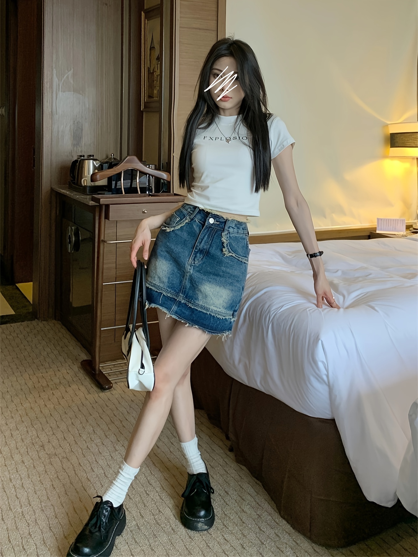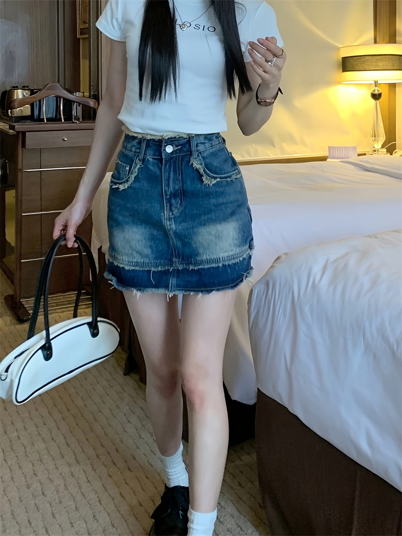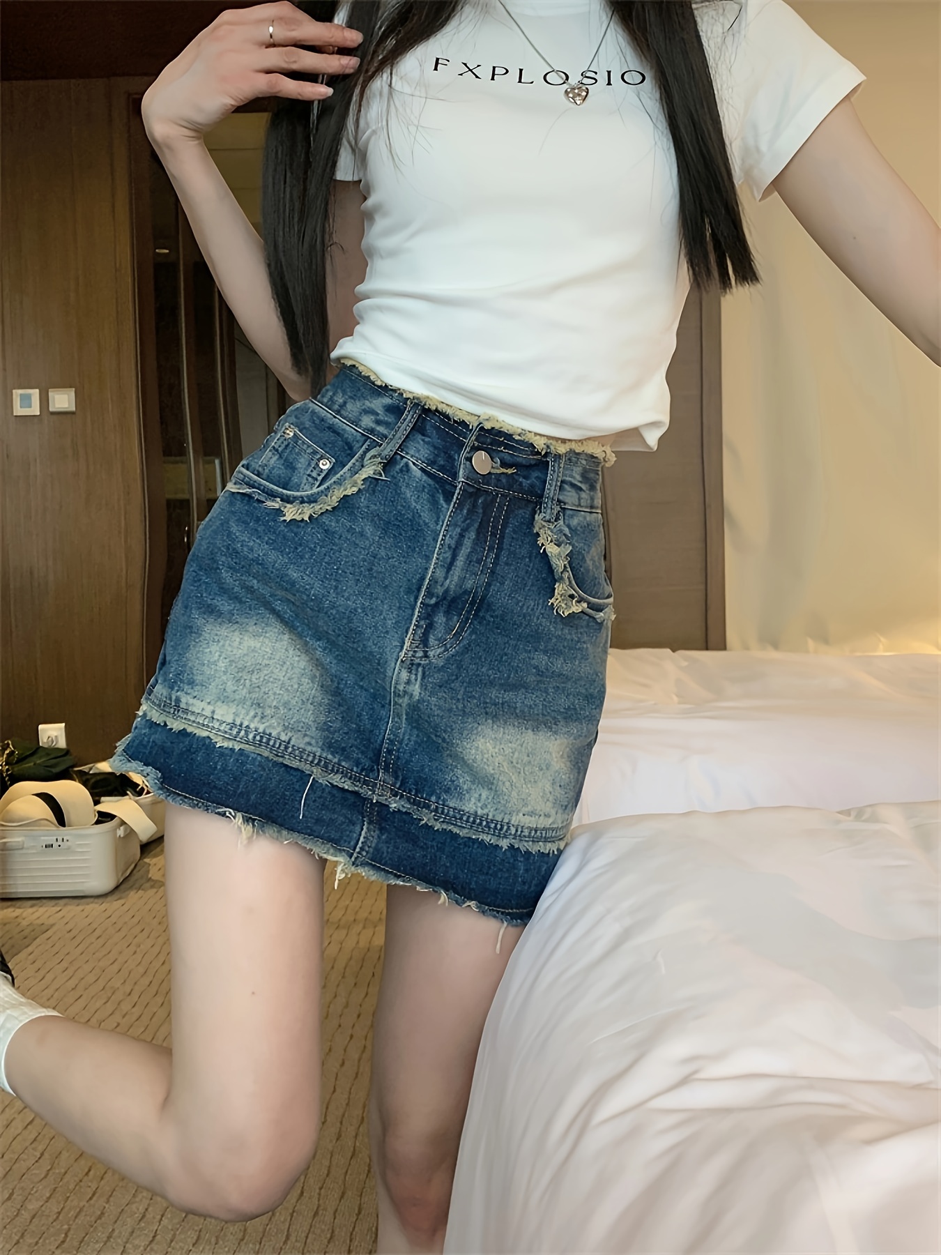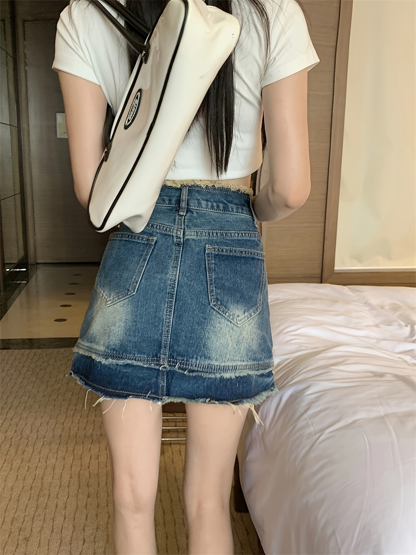 Women’s High-Waisted Denim Mini Skirt With Raw Hem, Sexy Jean Skirt, Summer Fashion Casual Wear